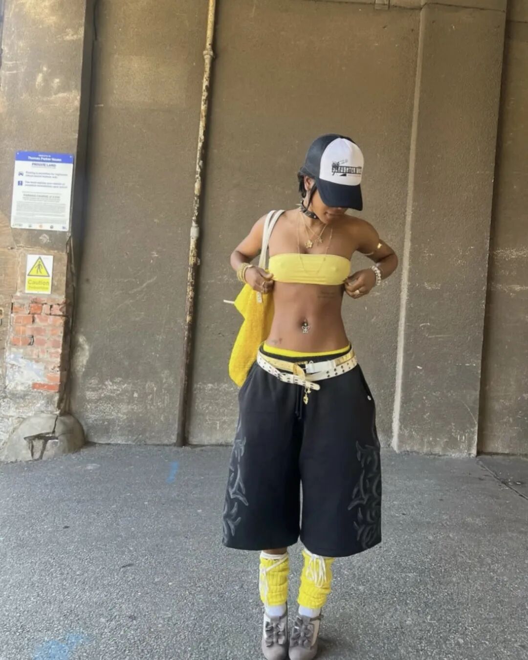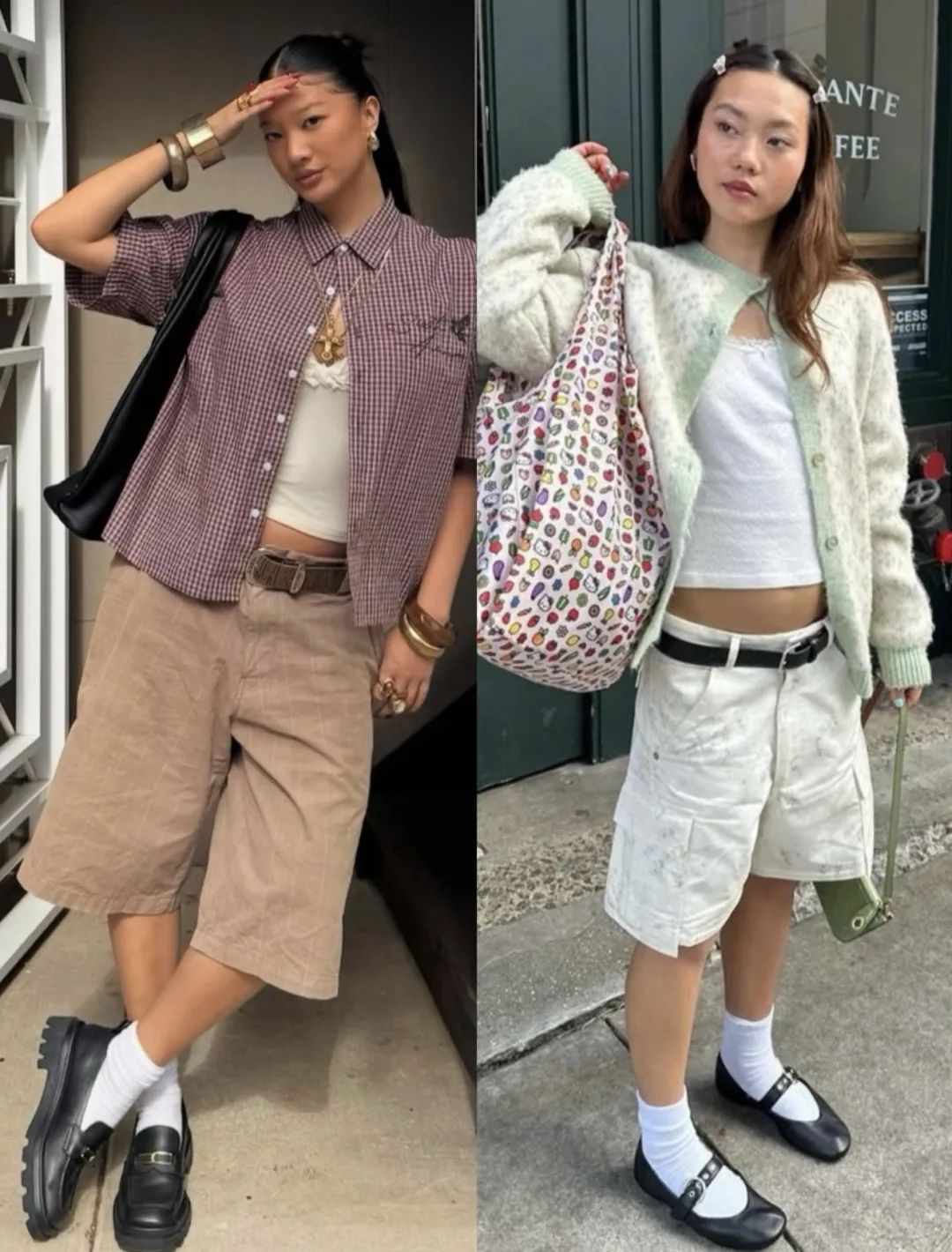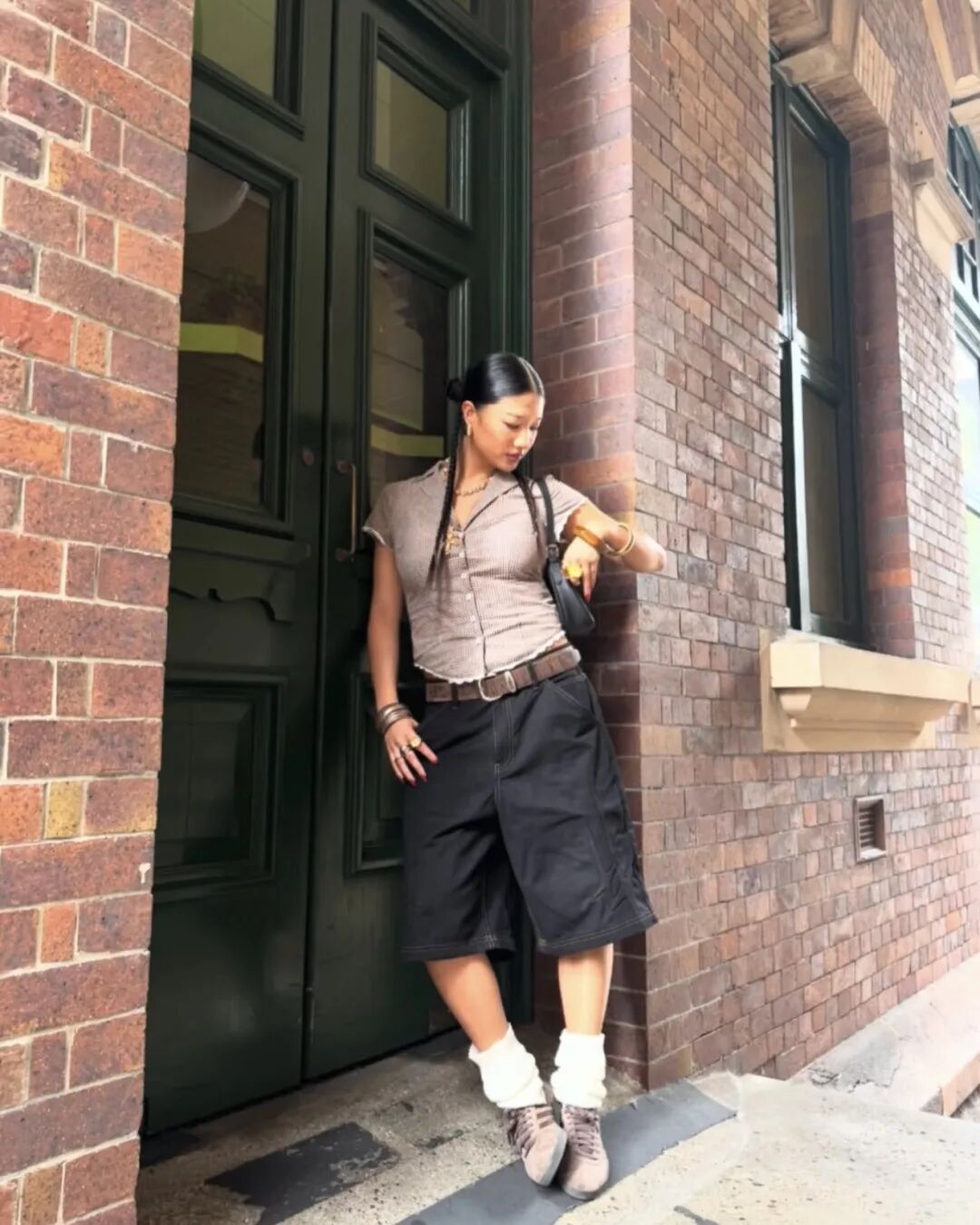 4. 中裤 + 辣妹上衣:又甜又盐的酷辣穿搭