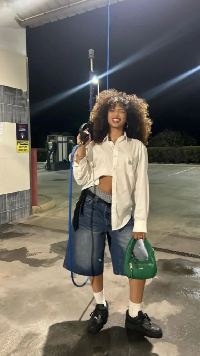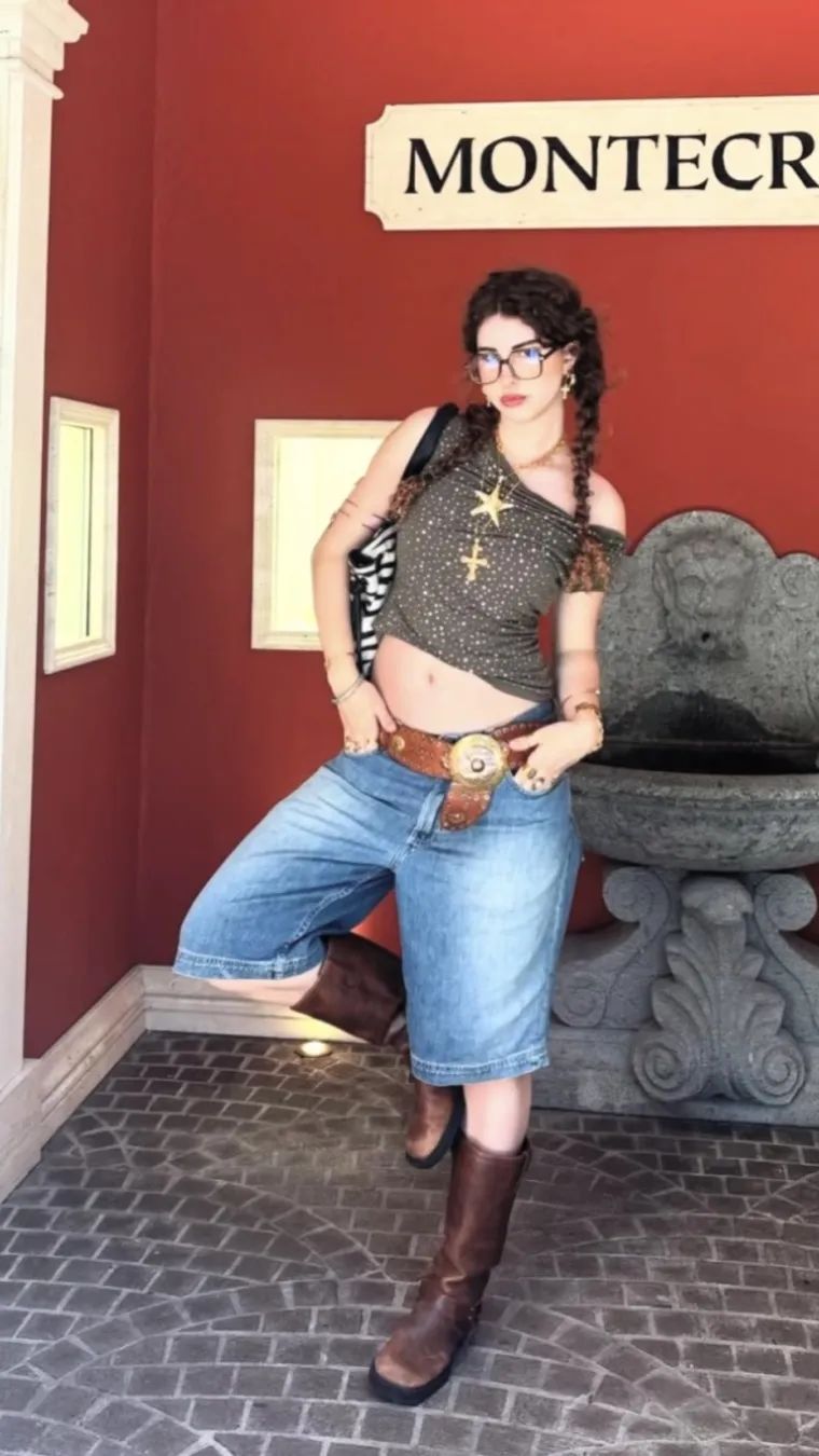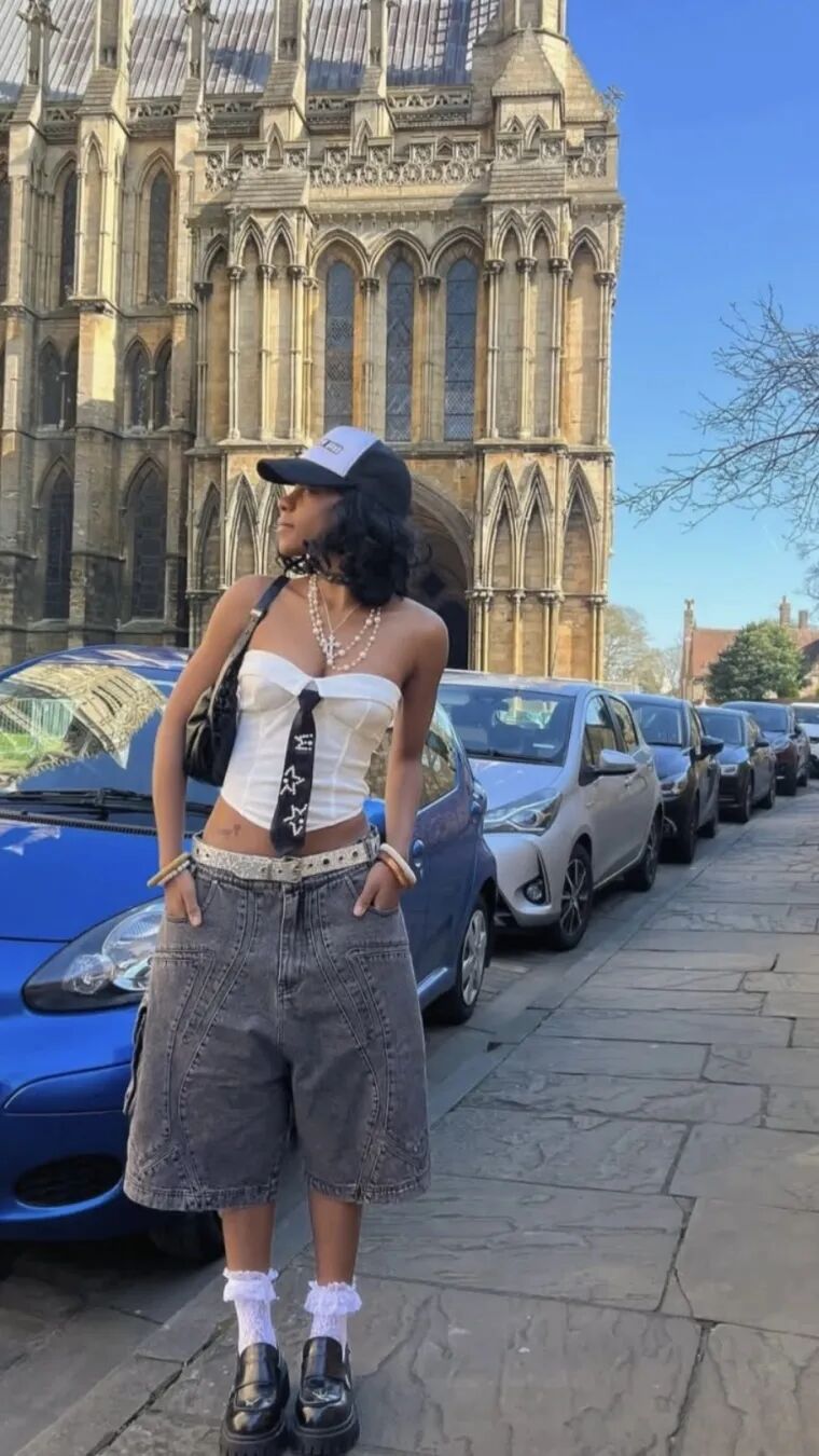 4. 中裤 + 辣妹上衣:又甜又盐的酷辣穿搭