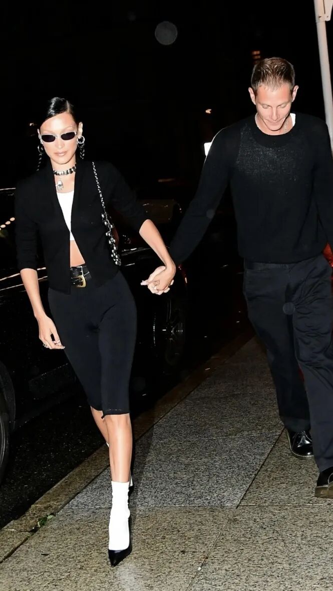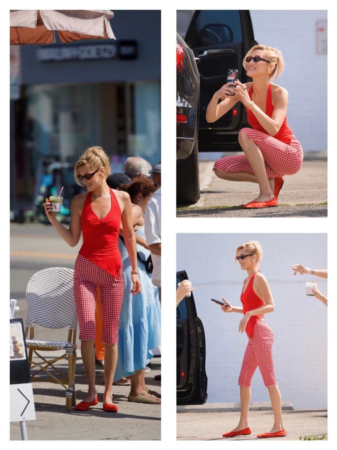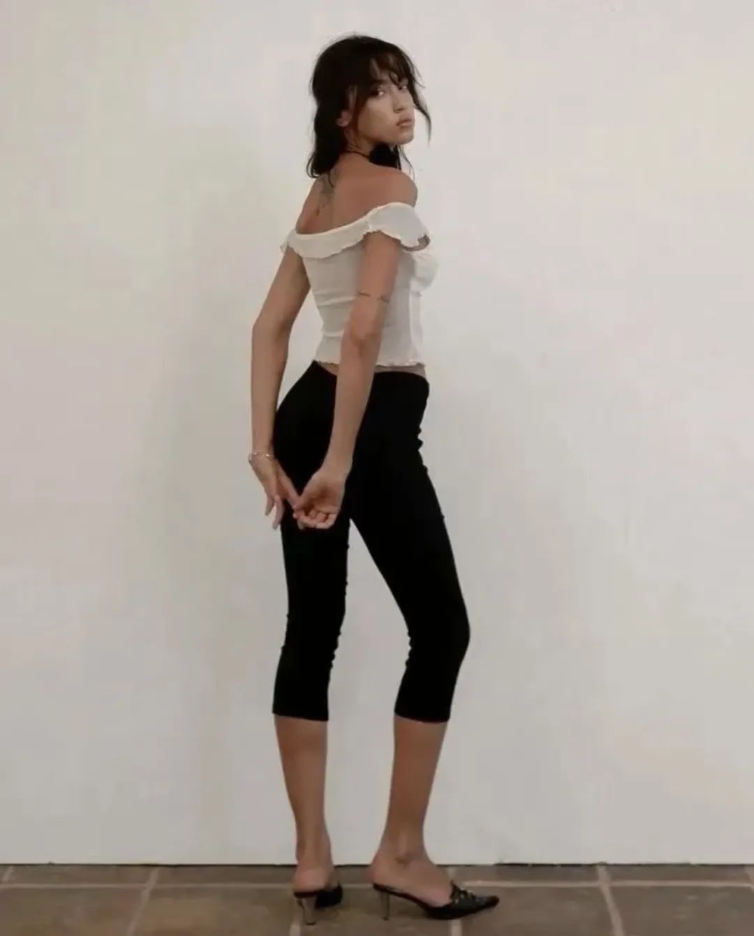 Bella Hadid最近出街又穿上了超短上衣和修身剪裁的中裤(capri pants)今年重返视线脚踩芭蕾风凉鞋,完美拉长腿部线条,瞬间捕捉千禧年复古风情,整体造型既性感又干练。