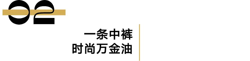 中裤打破了短裤的单一感,也摒弃了长裤的拘束感,在保有造型感的同时,更带来舒适与灵活。