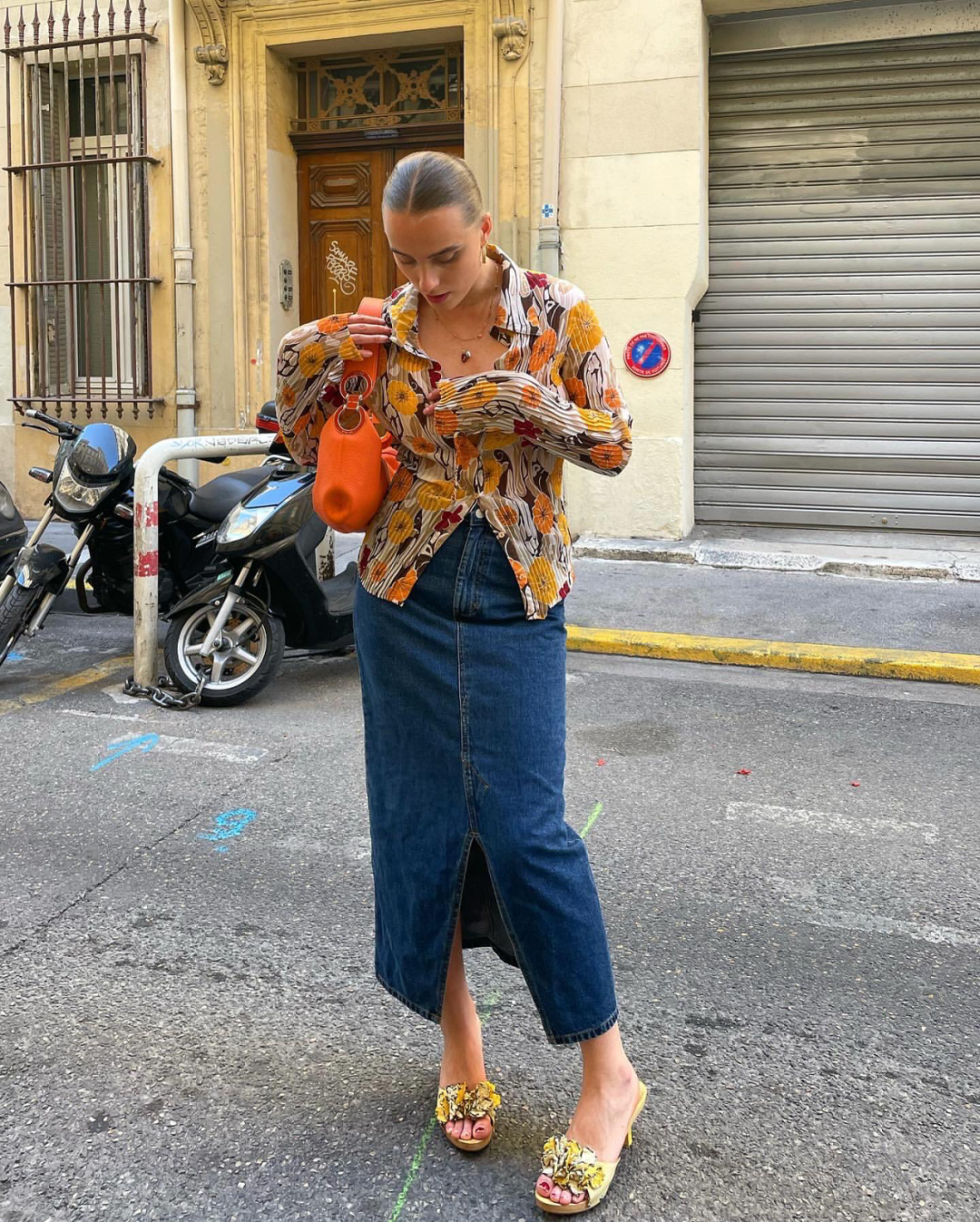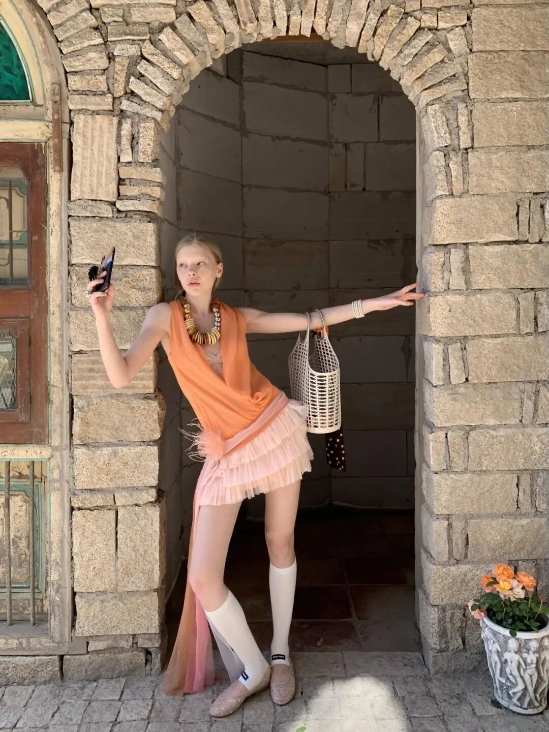 哪怕全身只有一件橙色单品,比如短裙或是吊带背心,就能让整体造型充满活力。橙色包包、耳环的点缀起到吸睛效果的同时又不会喧宾夺主。