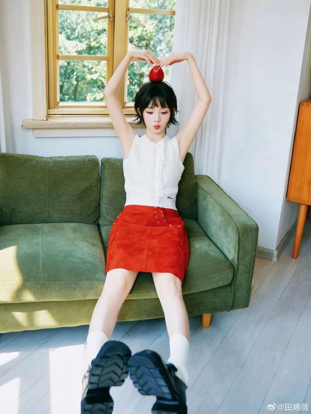 看看女明星们的日常穿搭,个个都是元气满满的“水果味女孩”。雨夜撑伞的卢昱晓用樱桃红针织背心叠穿白背心,樱桃红的明艳在撞色中更显甜美。