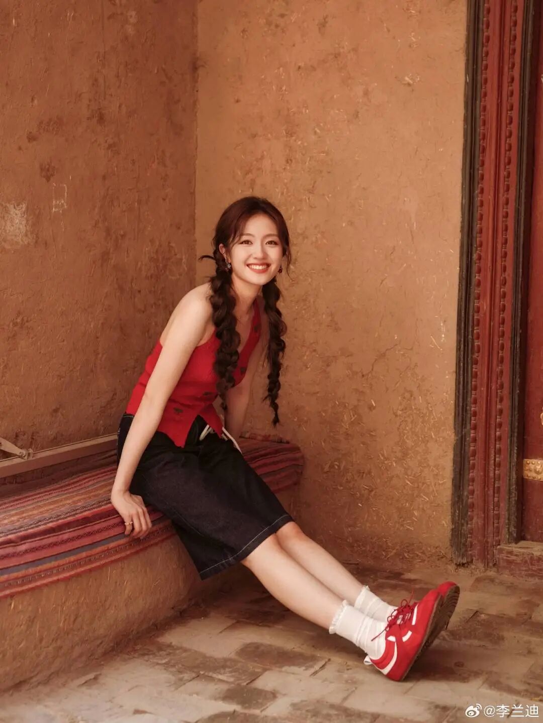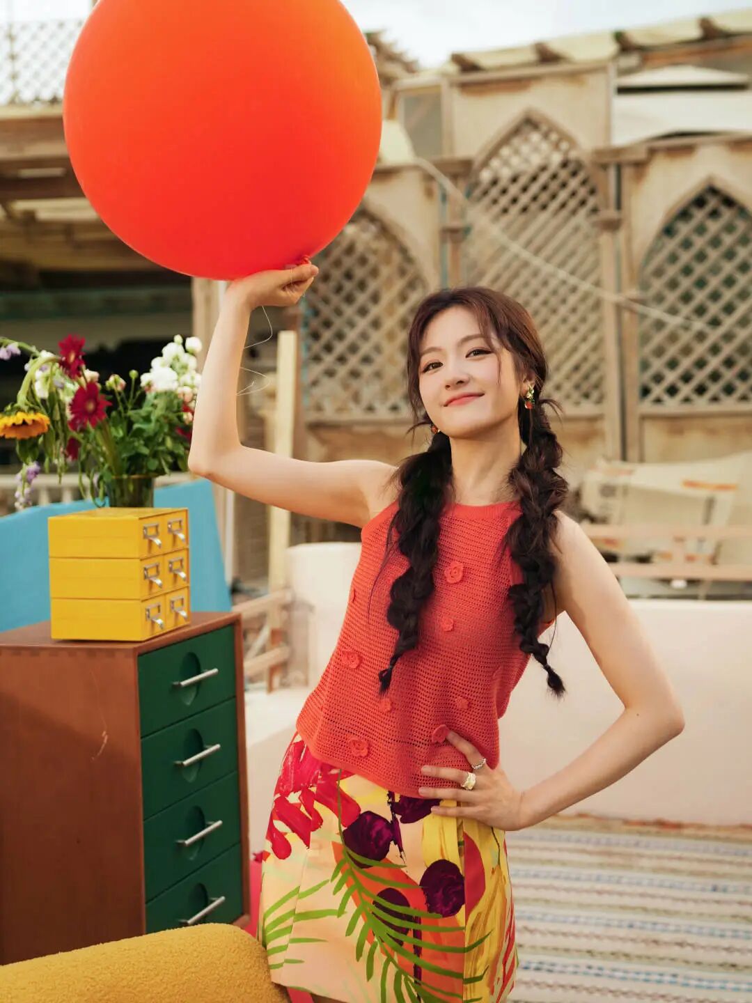 身穿樱桃红上衣的金靖一整个“港里港气”起来,搭配千禧年代的标志性单品,继续领跑“夏日复古千金”赛道。