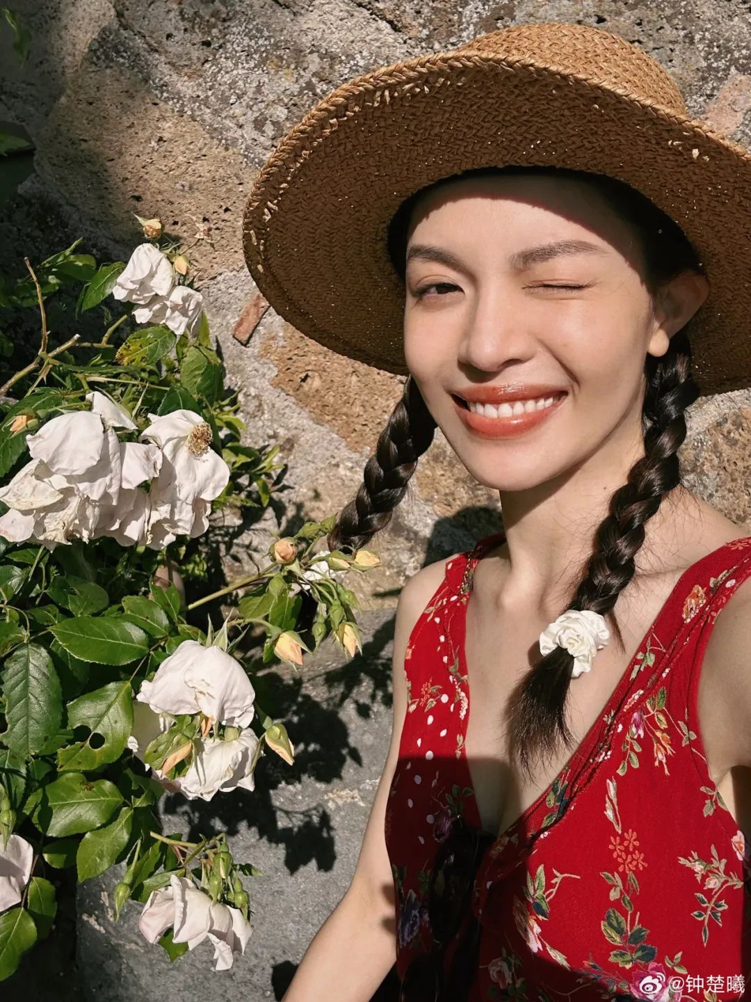 “夏日模式”的钟楚曦也是妥妥的“水果味女孩”穿搭。印有樱桃图案的黄色褶皱上衣、色彩缤纷的针织裙、樱桃红碎花连衣裙,明媚的夏日气息扑面而来。