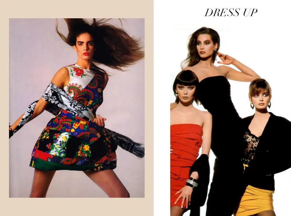 Gianni Versace在20世纪80年代迅速崛起,他惊世骇俗般地将曾经流行的装饰性艺术风格重新带回时尚界,并凭借意大利制造的风潮迅速打响了时装屋的声名。奢靡性感的女性形象煽动着媒体,五光十色的裙装和阿玛尼克制优雅的新正装形成了强烈对比。当时的媒体还戏称二者为意大利的“阴阳两极”,Versace和Armani也成为了意大利时尚史上两张最具代表性和影响力的名片。