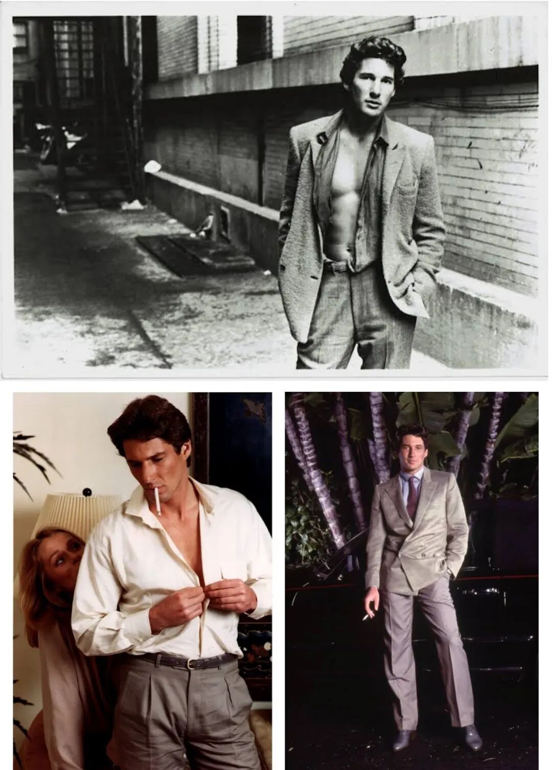 Giorgio Armani为电影《美国舞男》的主演设计了全套服装,伴随着影片的热映,严谨克制、优雅自由、张弛有度的品牌形象从好莱坞走向了全世界。片中Richard Gere挑选Armani全套装束的场景,无疑是Armani最成功的广告之一,也让Richard Gere成为20世纪80年代最火热的性感符号和男性偶像。