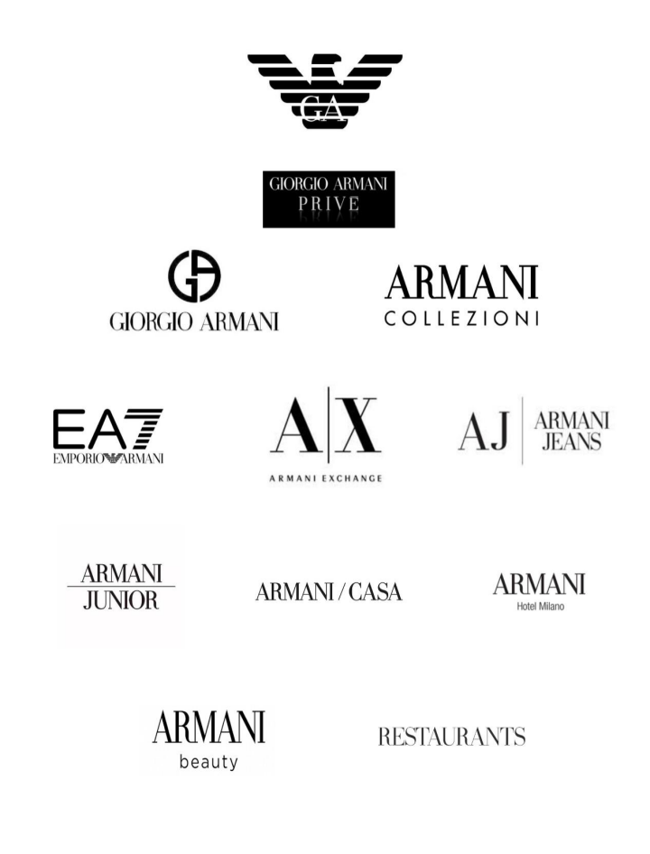 副线品牌Emporio Armani在1981年正式成立,它依托着主品牌的影响力在20世纪80年代开辟了一个巨大的二级市场,分店从美洲开到了亚洲。之后又推出了Armani Collezioni成衣系列、Armani Jeans牛仔线、A|X Armani Exchange、Armani Casa高端家居、Armani Junior童装线、Armani Hotels、EA7运动线、Armani Beauty美妆线、Armani Restaurant餐厅,还和三星品牌合作推出了Armani Phone,并于2005年发布Armani Privé高级定制系列,全面构建了一个阿玛尼品牌帝国。