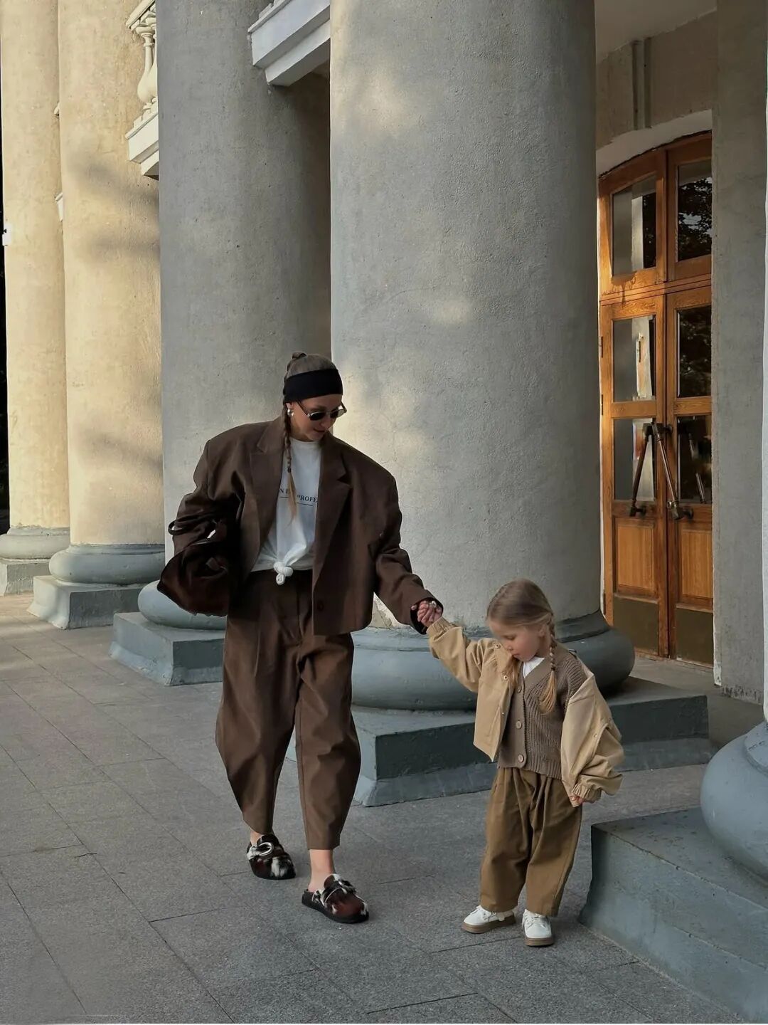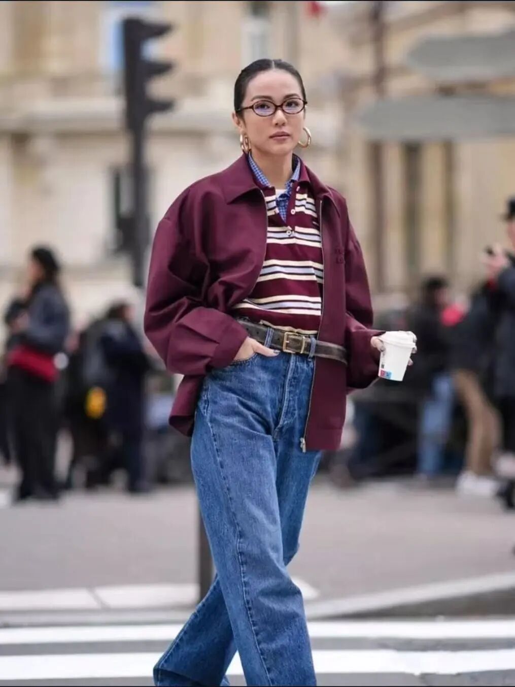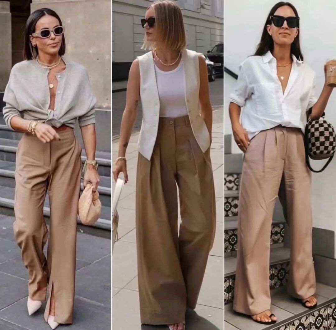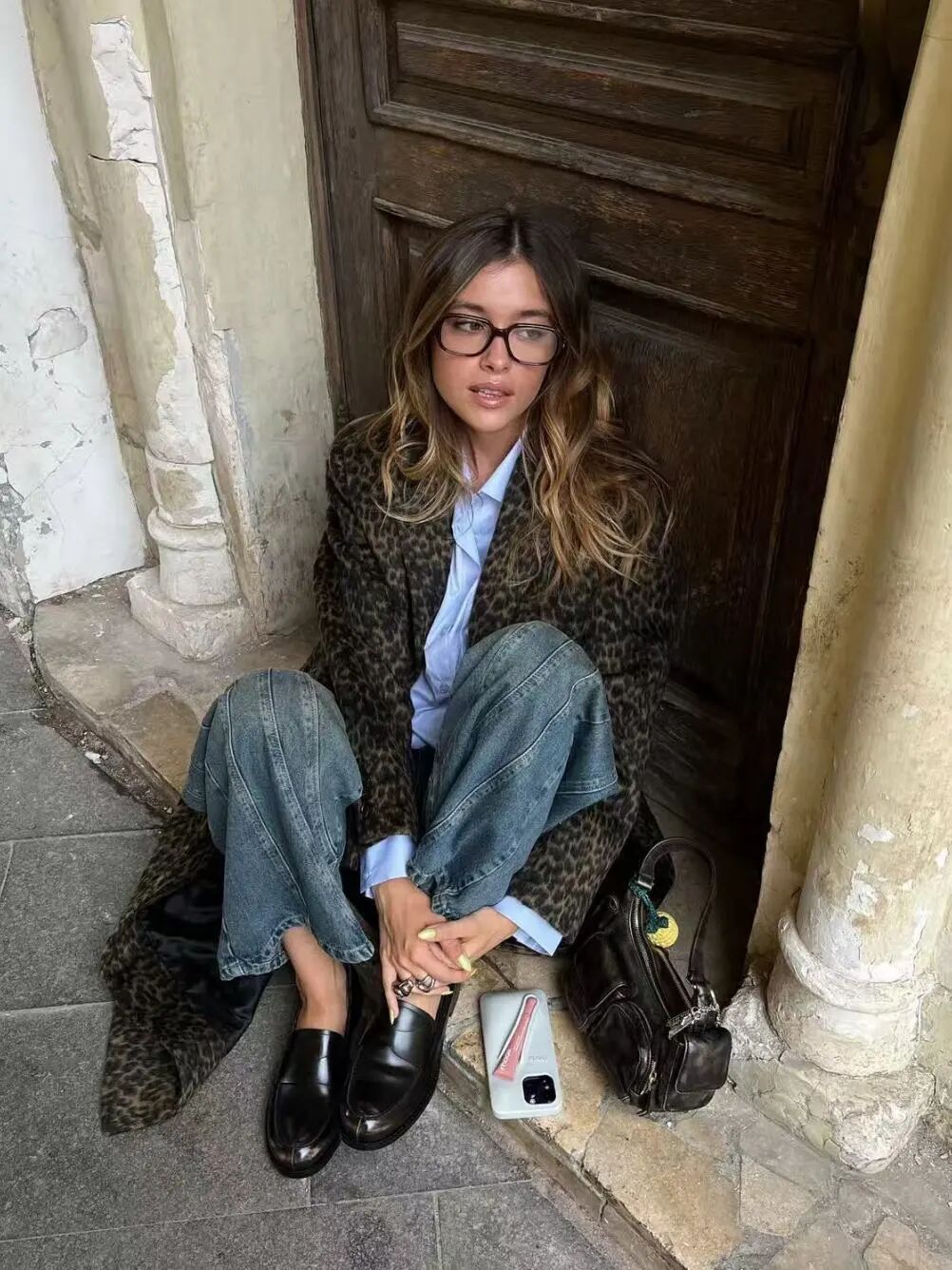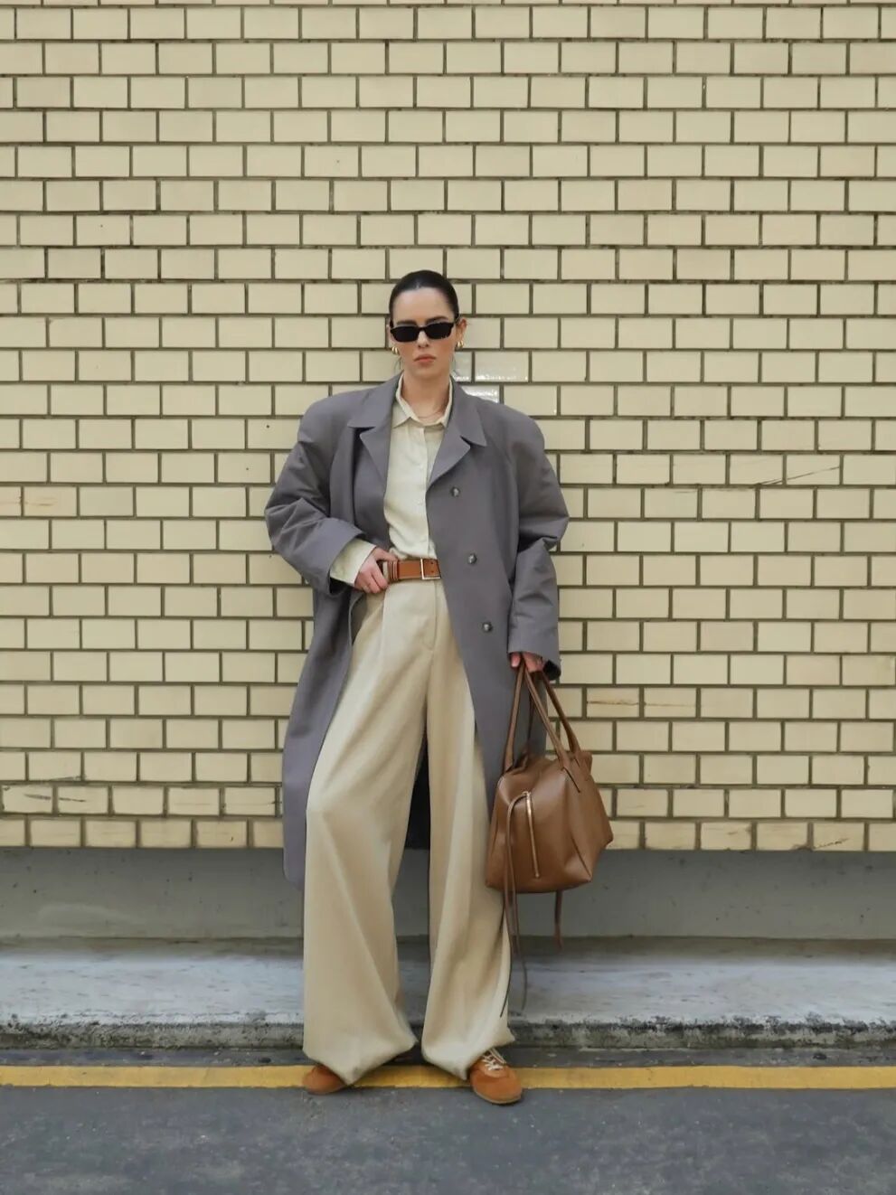 宽松卡其裤或西装裤是不可或缺的单品。2025年裤装有了更多变化空间,褶皱设计的宽松西装裤,或灯芯绒、条纹羊毛裤等特殊面料裤款,能增加造型丰富度。