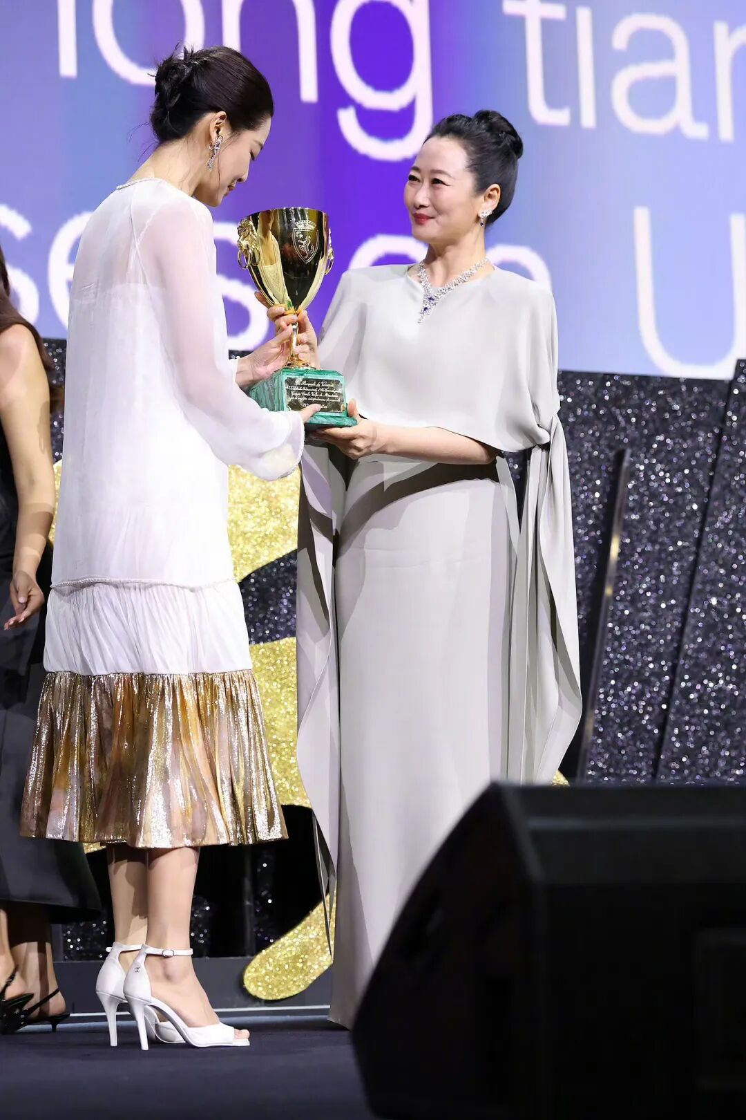 当赵涛以威尼斯国际电影节评委身份为辛芷蕾颁奖的那一刻,两位东方女性在聚光灯下的相视一笑,展现了超越时代的女性力量与审美共识。