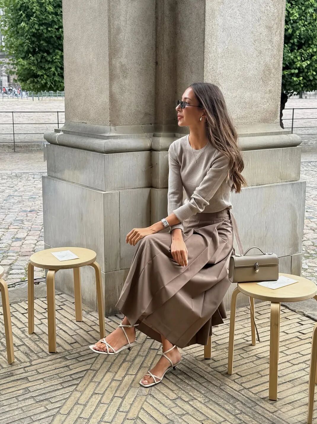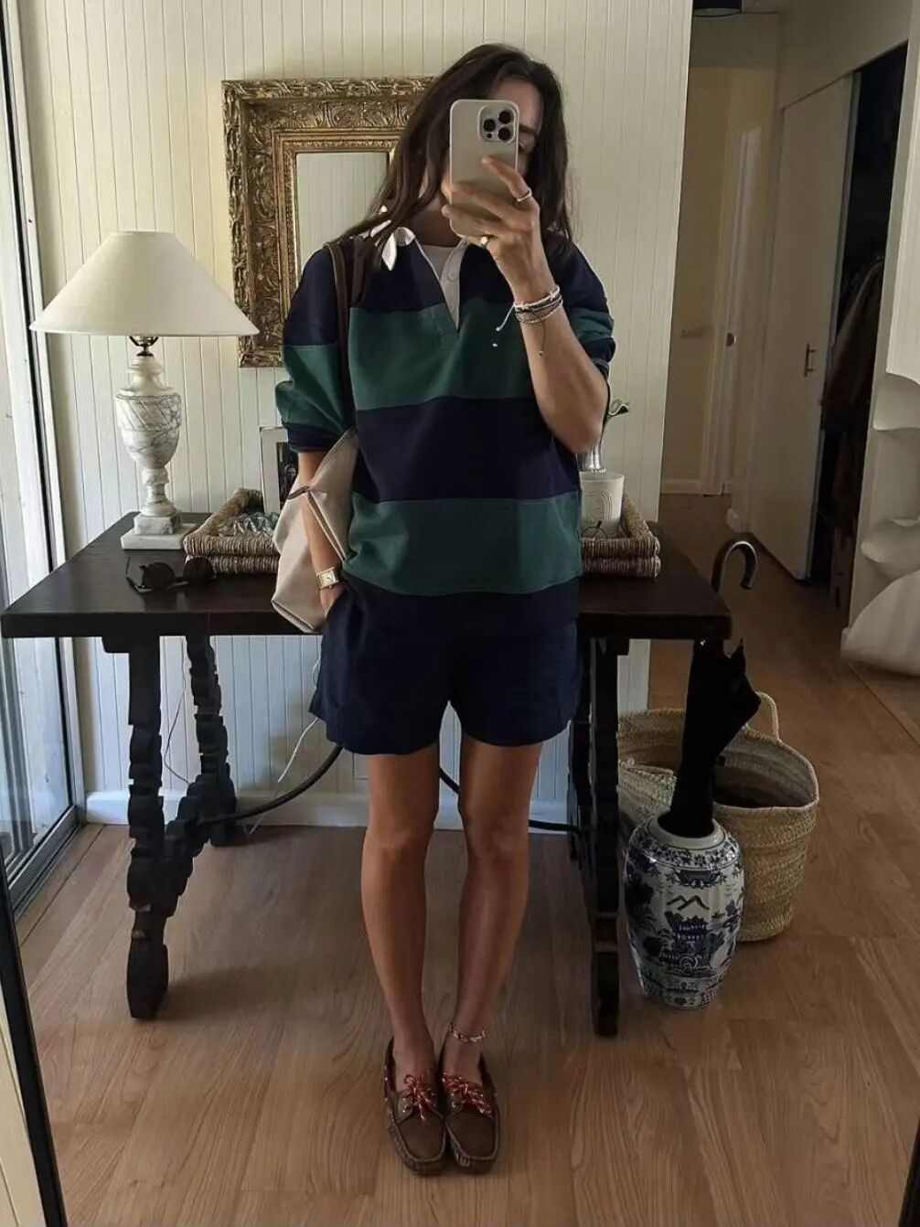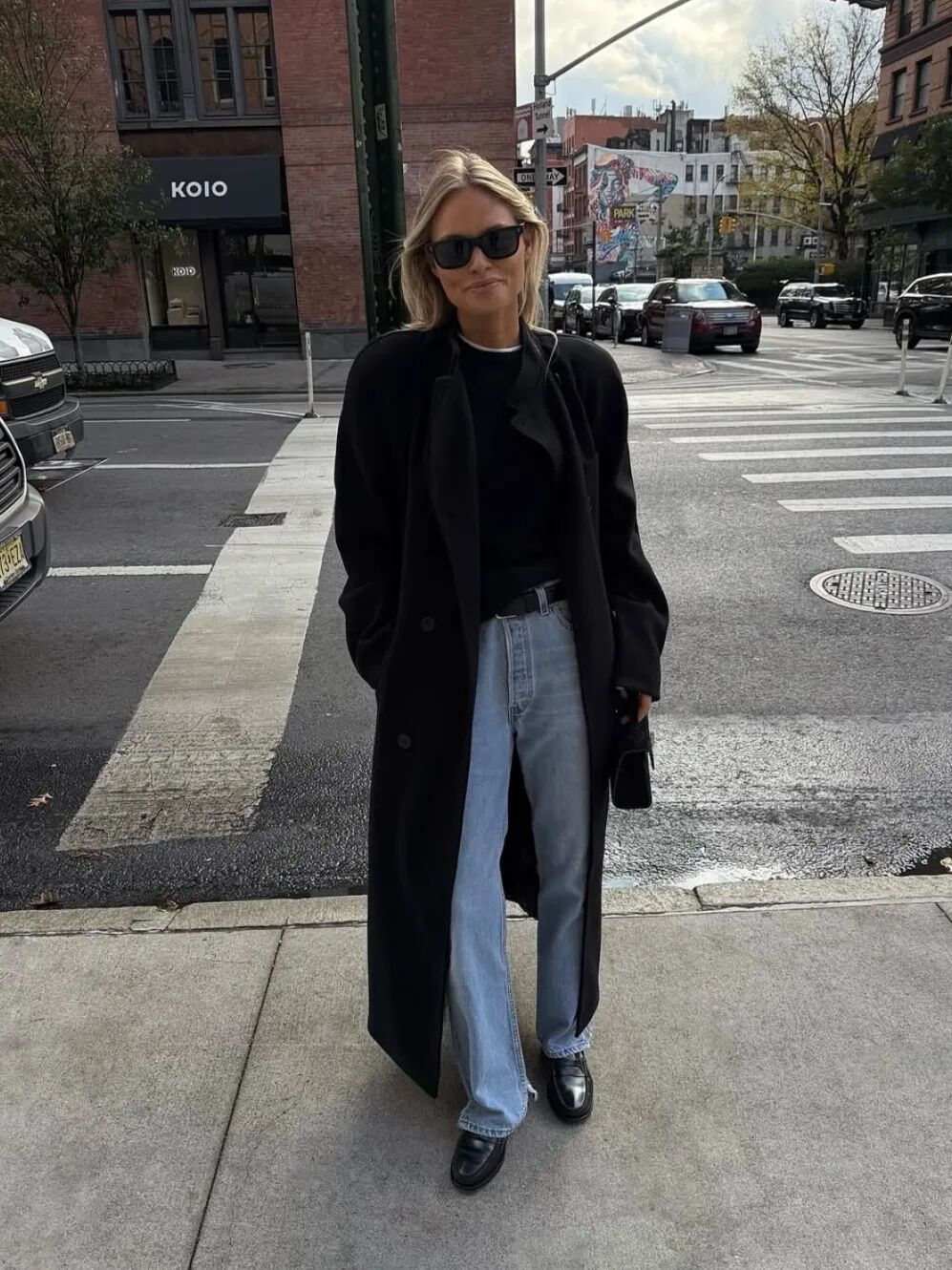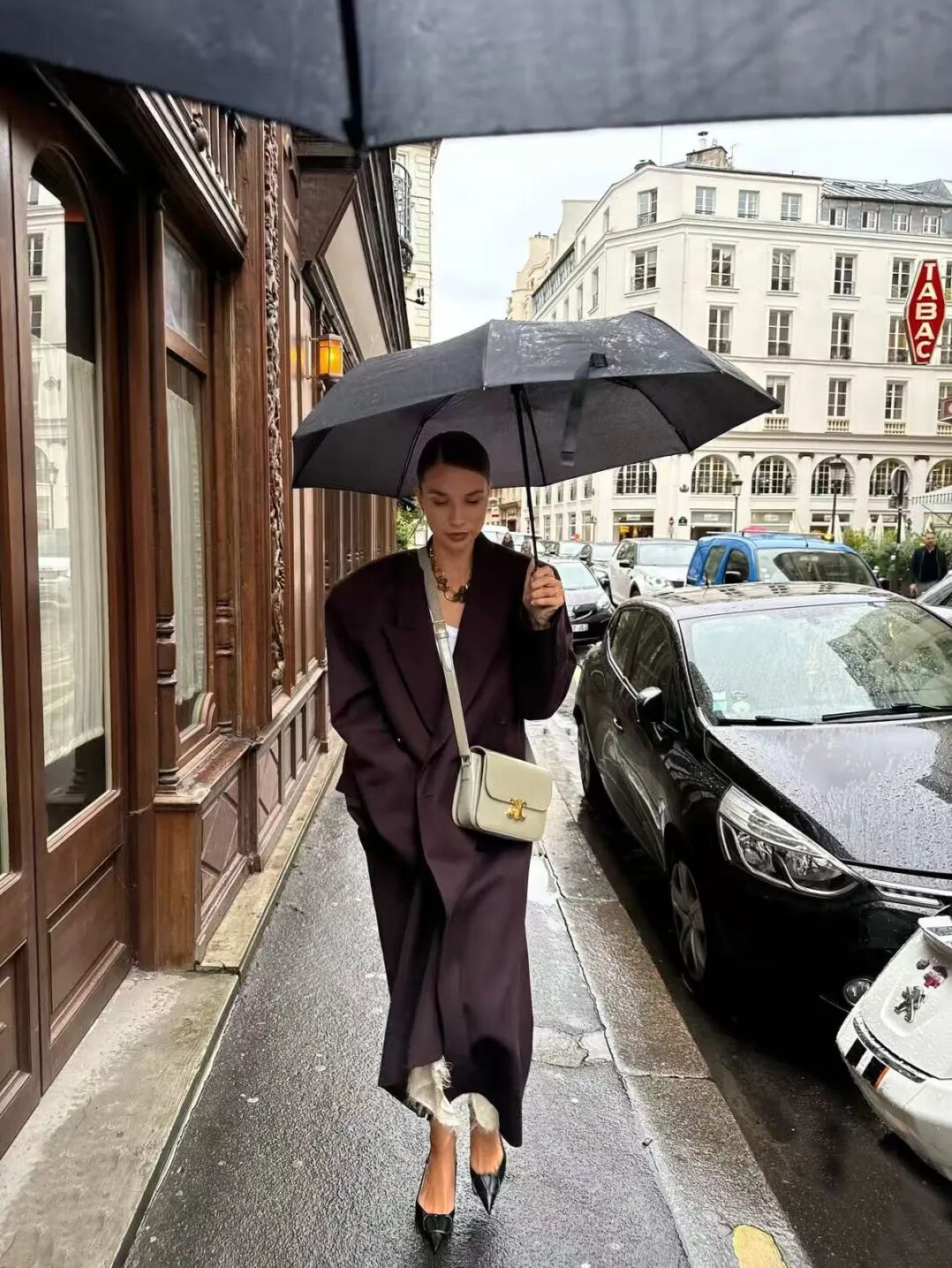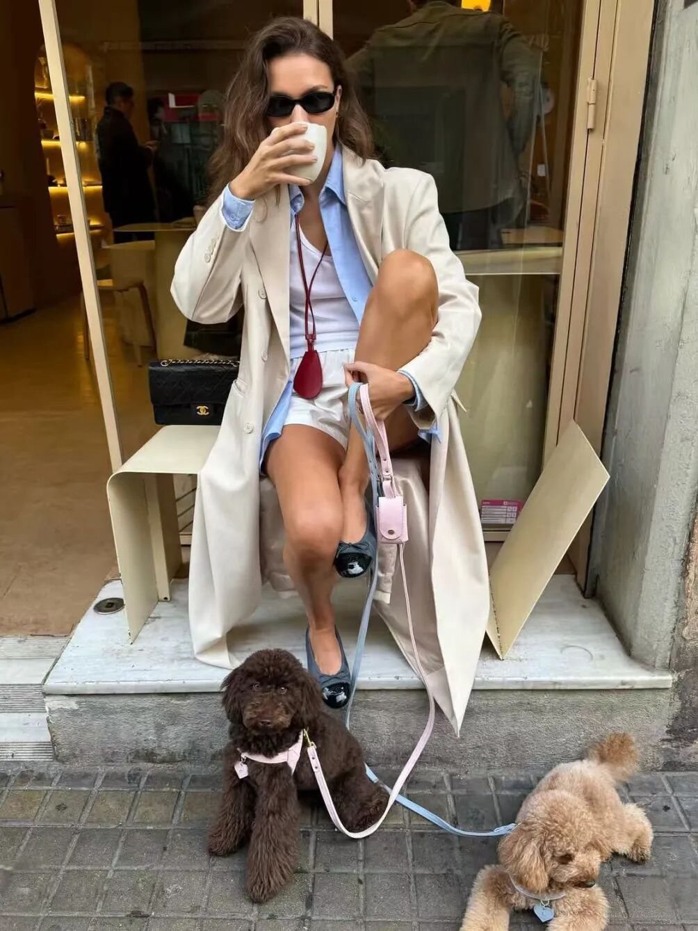 卡其色外套是万能模板,选择略带oversize的剪裁,可以选择内搭米白色、黑色或同色的针织衫,搭配一双乐福鞋,在松弛与精致间找到黄金分割点。