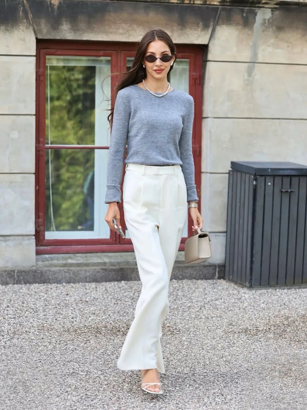 如果穿搭风格以黑白灰为主,也可以用最简单的基础款穿出疏离又高级的高智感氛围。注意冷色调和暖色调的巧妙结合,即刻化身为清冷系高智感穿搭的教科书。