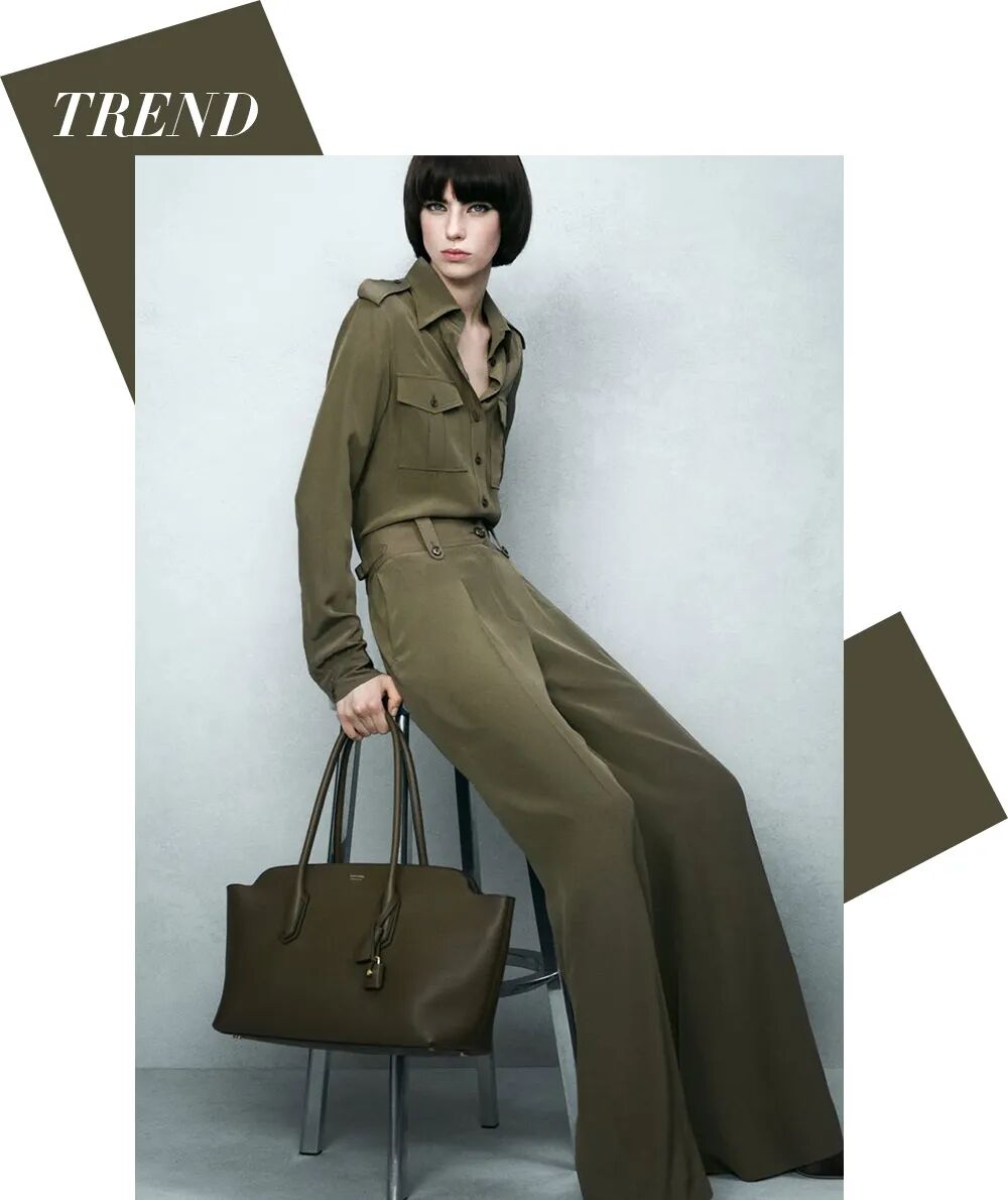 试着选取干净利落的直线条廓形,如宽肩西装、H形大衣、直筒长裤等,营造出温暖、沉静又极具高级感的视觉氛围,展现出一种理性而沉稳的高智感。