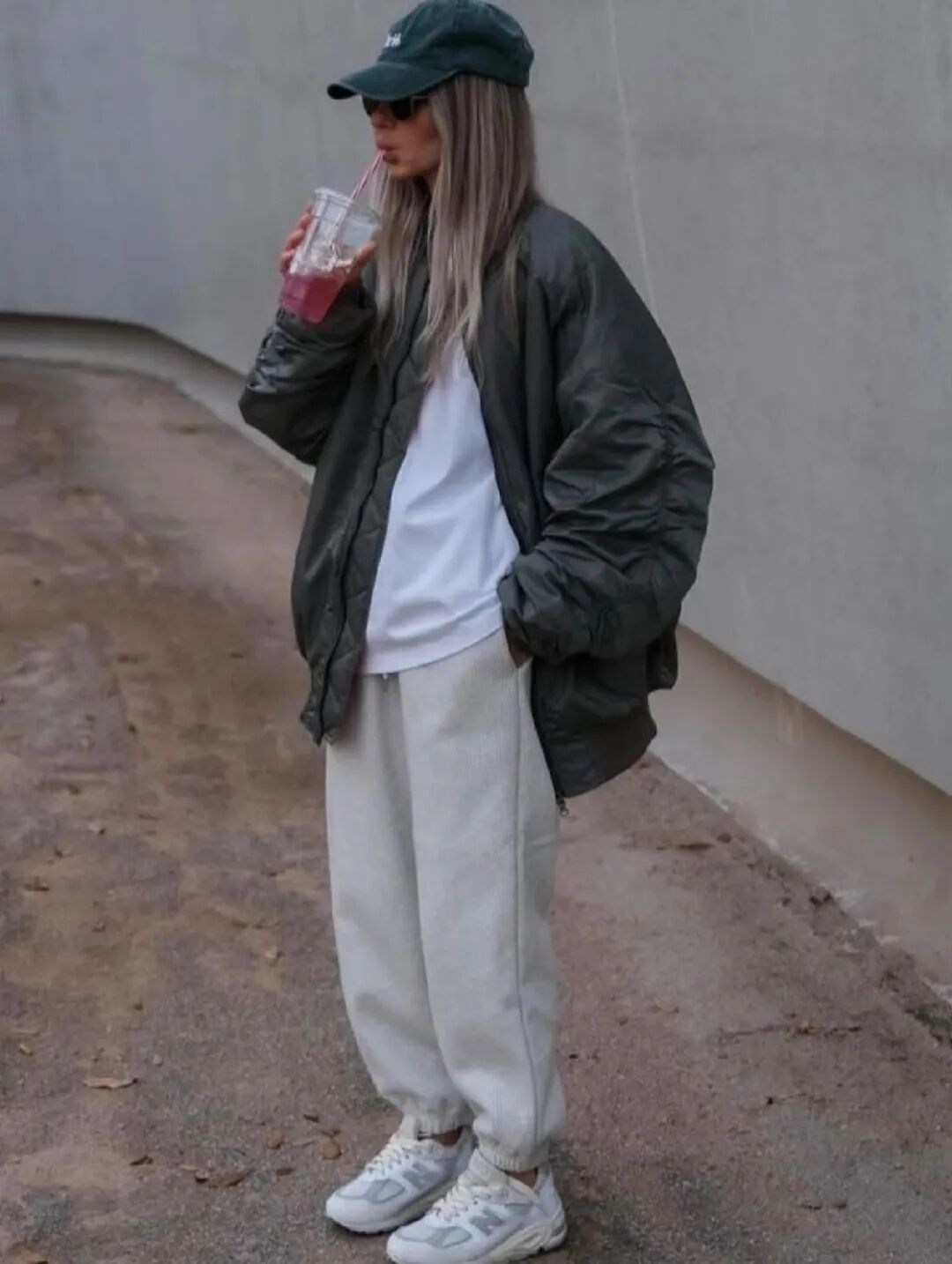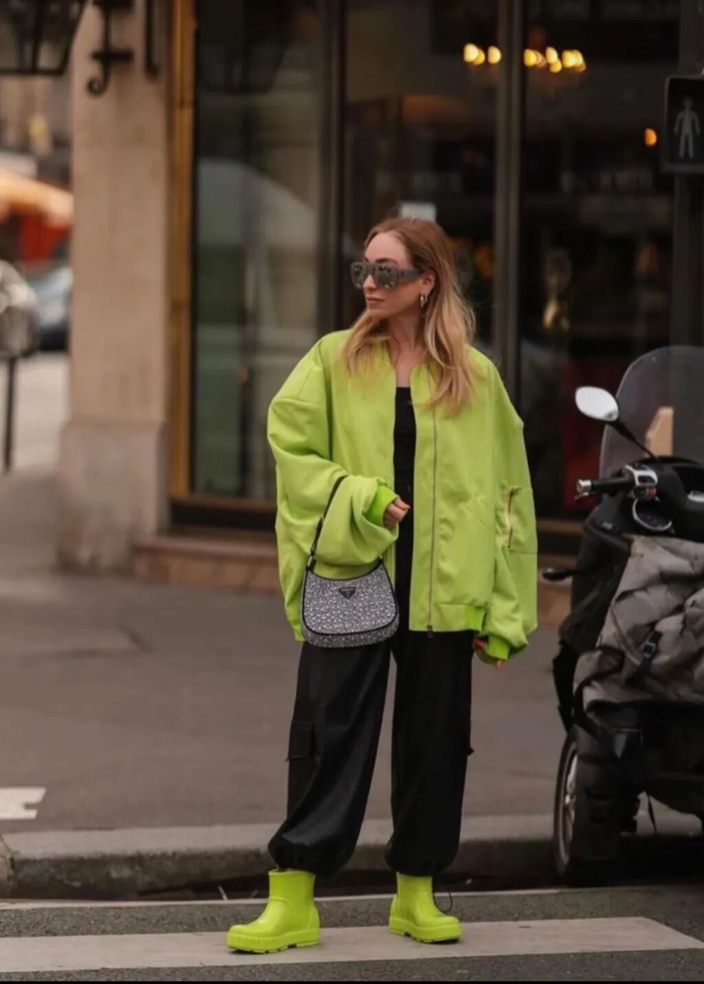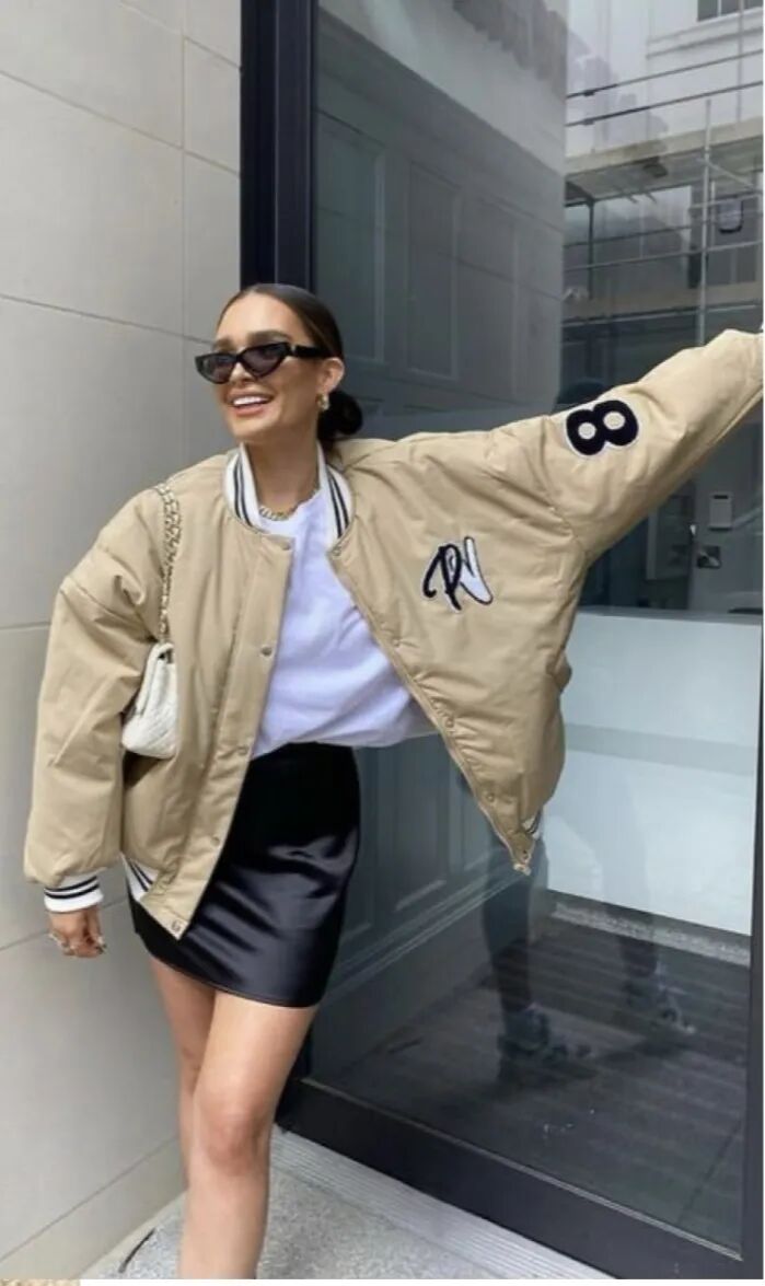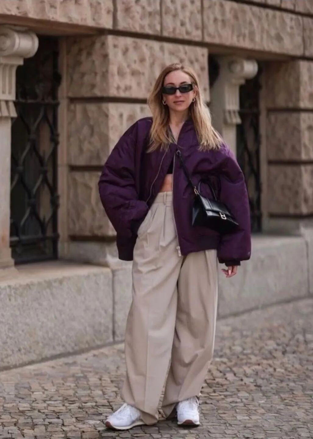 值得注意的是,今年流行的飞行夹克板型不再局限于传统短款。Oversize廓形、拼接面料以及亮色款式都成为热门。例如,浅粉、薄荷绿等意想不到的色彩,让飞行夹克突破了“沉闷秋冬”的局限,带来清新活力。