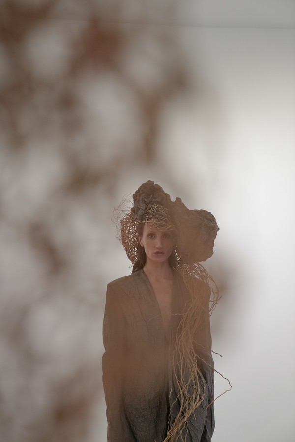 纤维艺术家: 夏⼼悦 (Freda Xia) , 往返于杭州与纽约之间的纤维艺术家, 创作跨越时装 、纤维与绘 画 。她现就读于帕森斯纤维艺术硕⼠项⽬ , 专注于探寻身体 、情感与⾃然之间的隐形线索 。她的 实践映照⼥性内在的细腻 、脆弱与坚韧, 并与⾃然世界交织成诗意的共鸣。