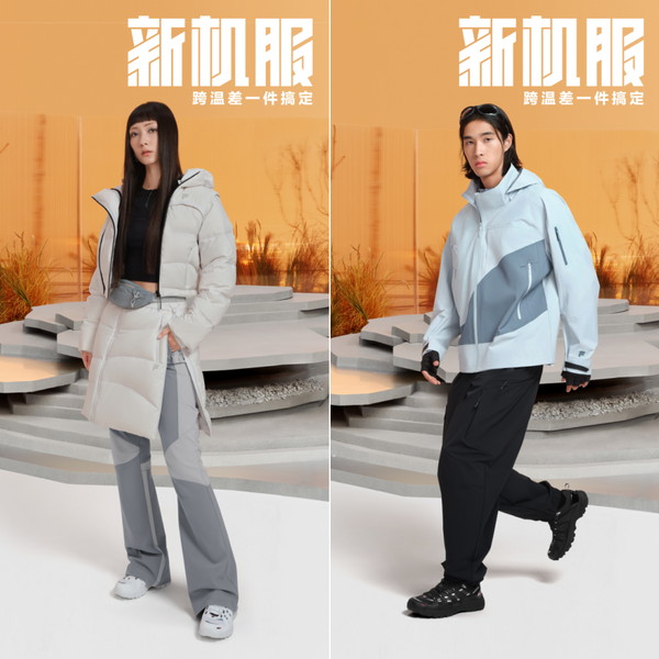 本季延续湖系灵感,新机服以打破传统秋冬的暗淡色彩,以莫兰迪色系搭配高饱和亮色点缀,彰显湖系穿搭的独特治愈感。系列以湖水蓝、静谧灰、大地卡其等柔和色彩成为主旋律,弱化了传统户外装备的冲击感,赋予穿着者沉静从容的气质。品牌代言人赵露思上身演绎的秋冬URBAN TECH系列,营造出安静又不乏活力的美学,在自然的静谧中回归身心的舒适。而潮流大使章昊示范的夜畔黑系列则融入了科莫夜晚的深邃与安宁,传递出冷静而自信的探索态度。新系列从服装到鞋履,搭配莫兰迪色系的穿搭,呈现出宁静而富有层次的视觉语言。