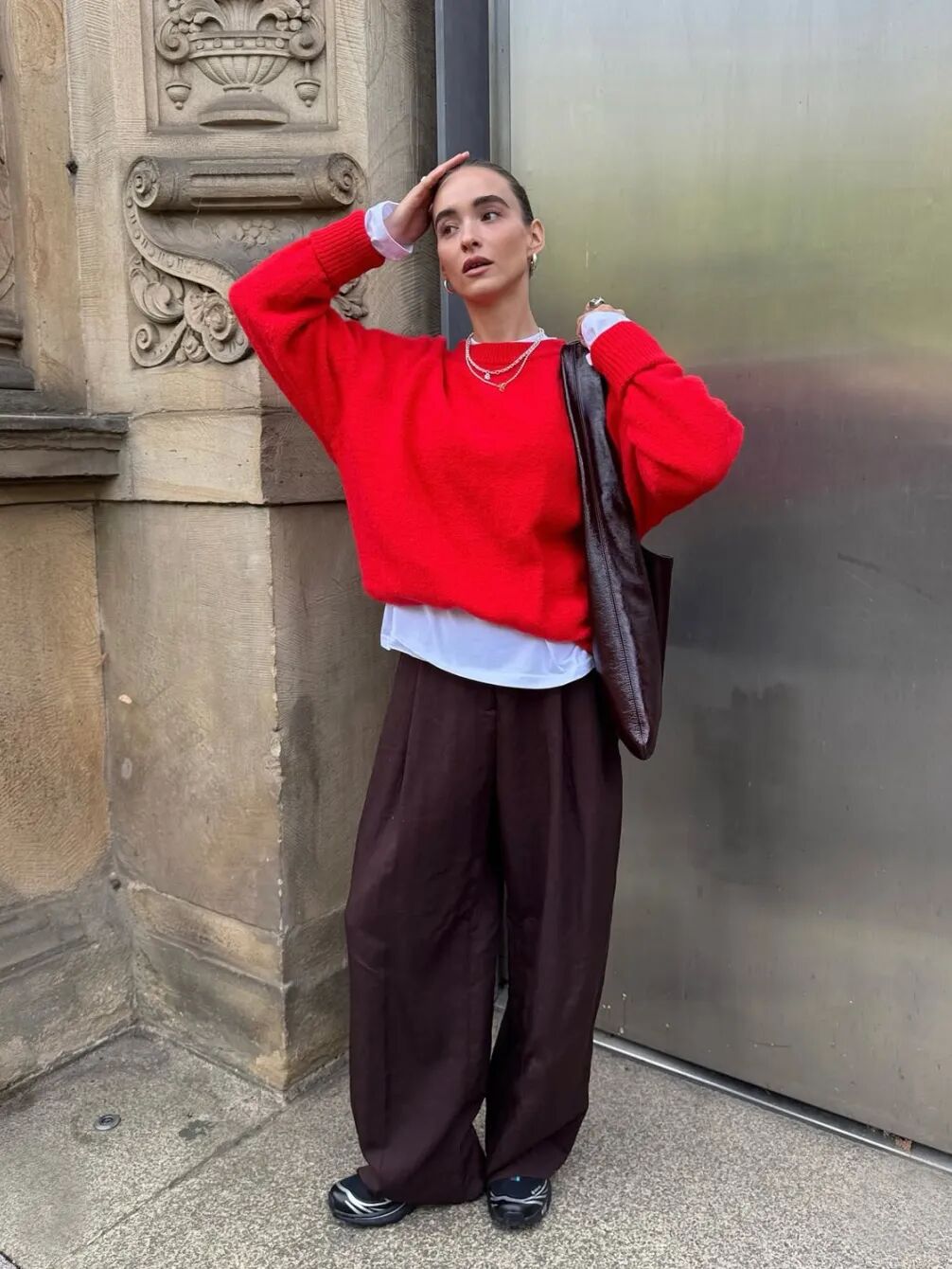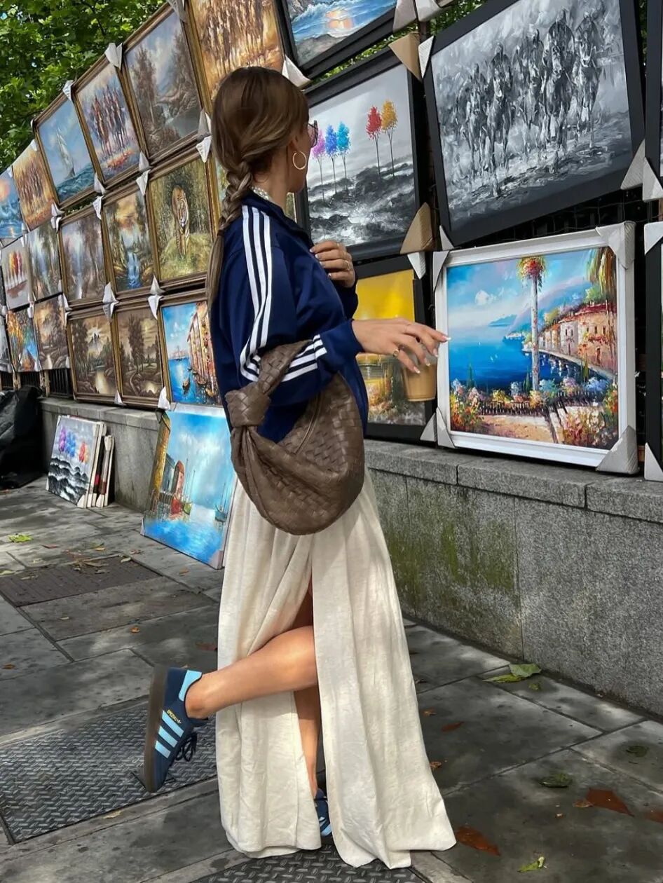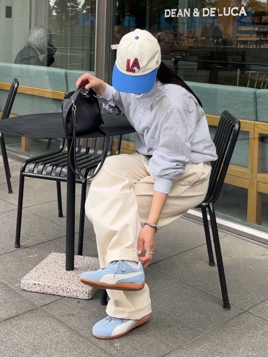 复古球鞋搭配阔腿裤或长裙,内搭Oversized衬衫,外套则是一件长款风衣或西服,既保持专业度又不失时尚感。建议选择焦糖色或黑白配色,更显高级。