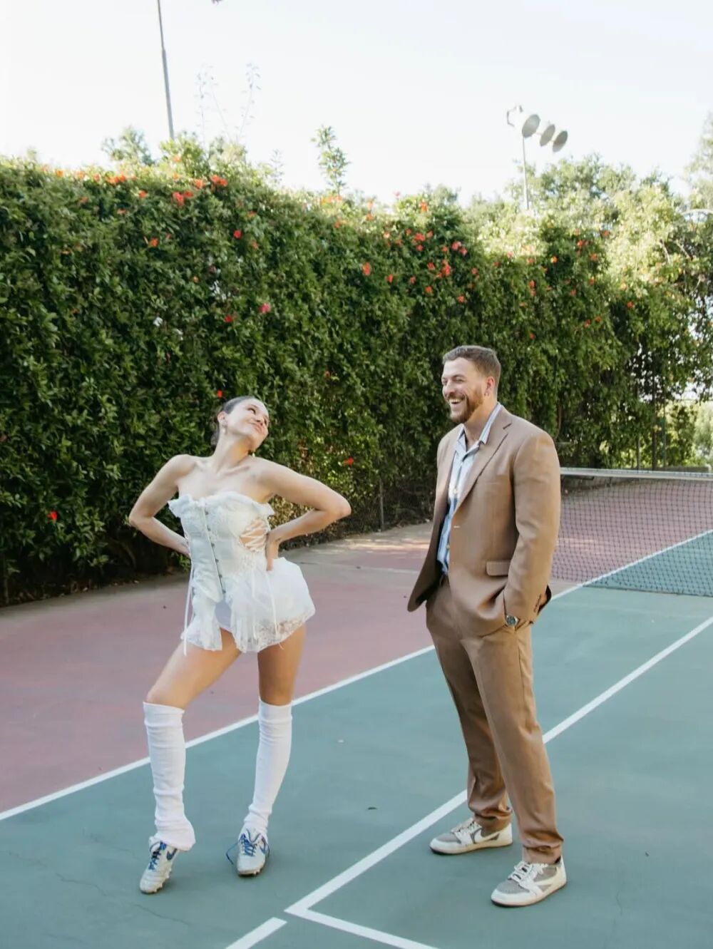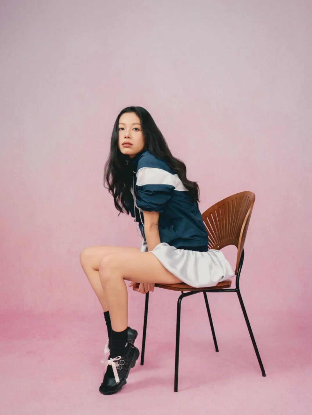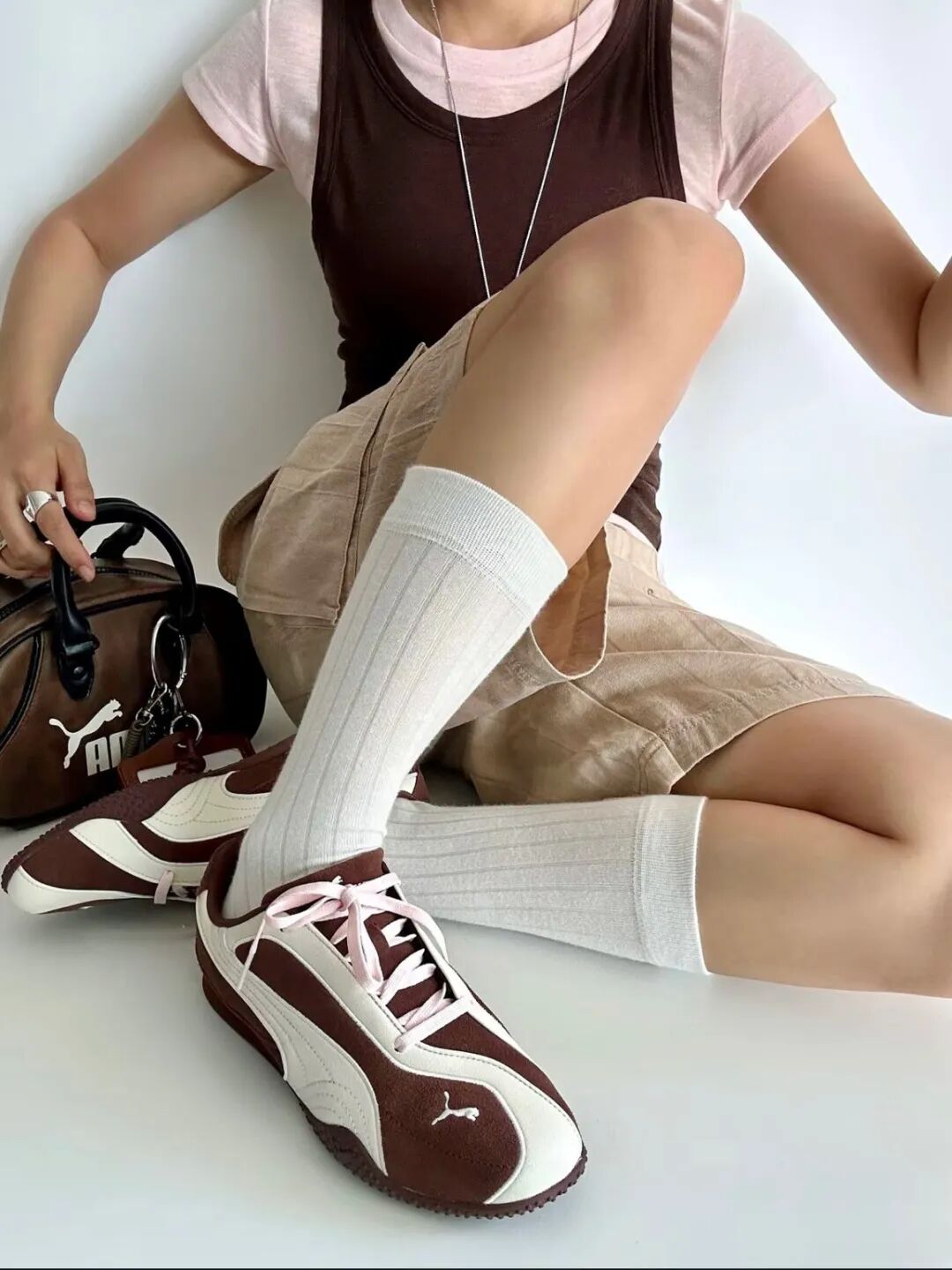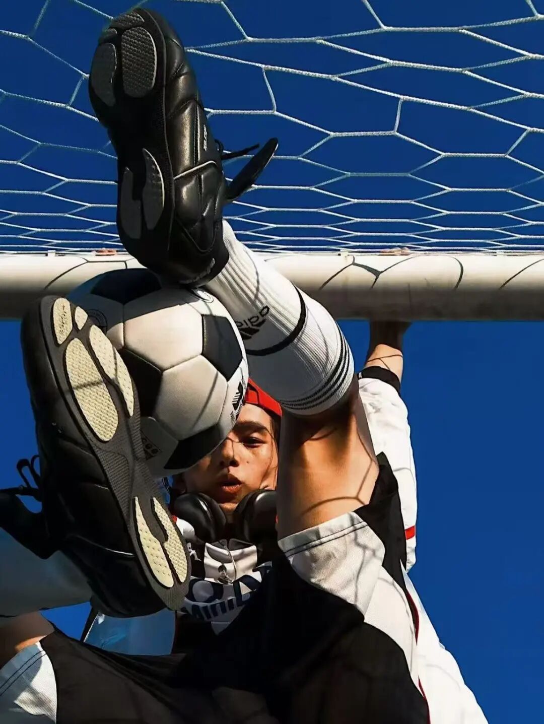 也可选择搭配白色足球袜和裙装,上身搭配紧身crop top和运动外套,完美平衡运动感与女性魅力。