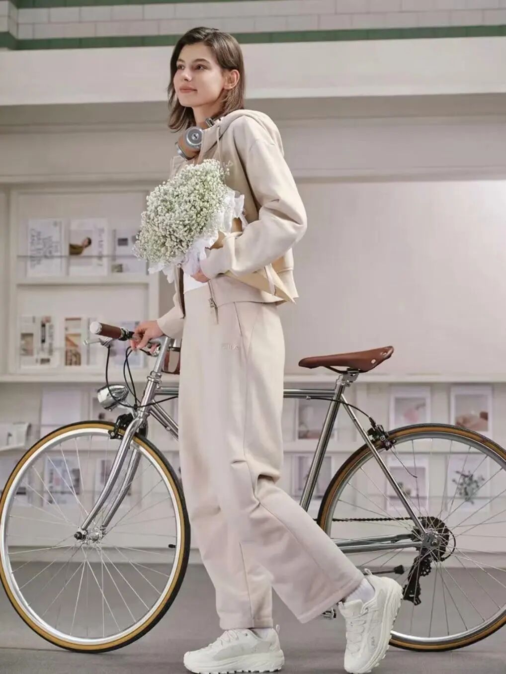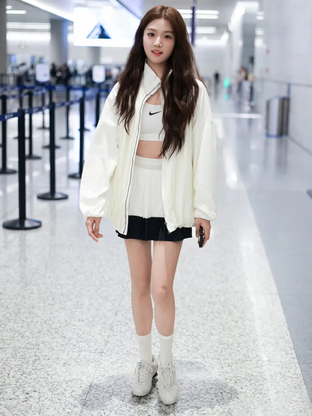 卢昱晓则钟情于复古跑鞋的休闲与氛围感,她上脚的Nike跑鞋,为运动风注入时尚质感,搭配同色系的运动风套装,整体造型活力清新。