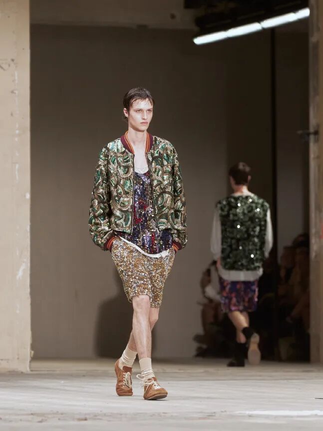 Dries Van Noten的超薄底德训鞋采用橡胶网眼和麂皮皮革拼接,保留经典圆头鞋头和对比色鞋带设计,新增的蛇纹皮革款式更打破了传统德训鞋的单调感。