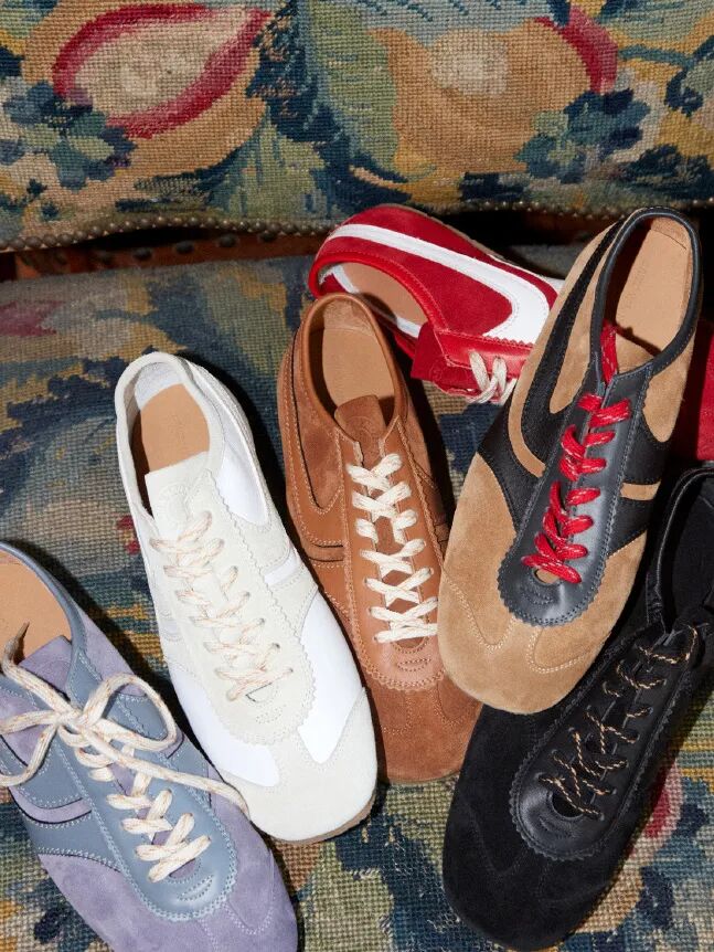 Maison Margiela的Sprinters新系列则将解构主义发挥到极致,小牛皮、麂皮与复古尼龙的拼接,加上手工做旧处理,每一双都仿佛承载着时光的故事,新增的深绿、浅蓝、牛血红等配色更是为秋日增添了一抹亮色。