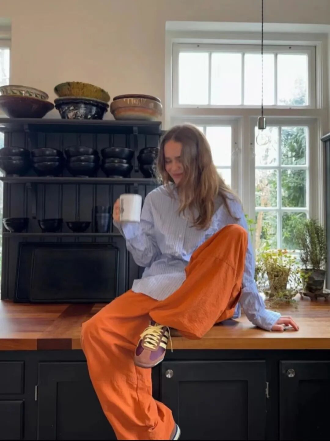 而这种风靡的文化符号,也在潜移默化地延伸至视觉审美。当 PSL 的暖橘色调不断被复制到 Instagram 的滤镜、博主的穿搭配色,南瓜色从餐桌跃入了衣橱,成为秋天的时尚暗号。