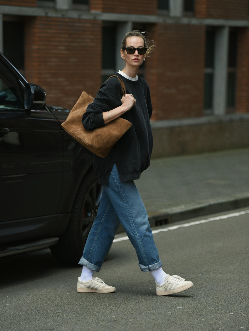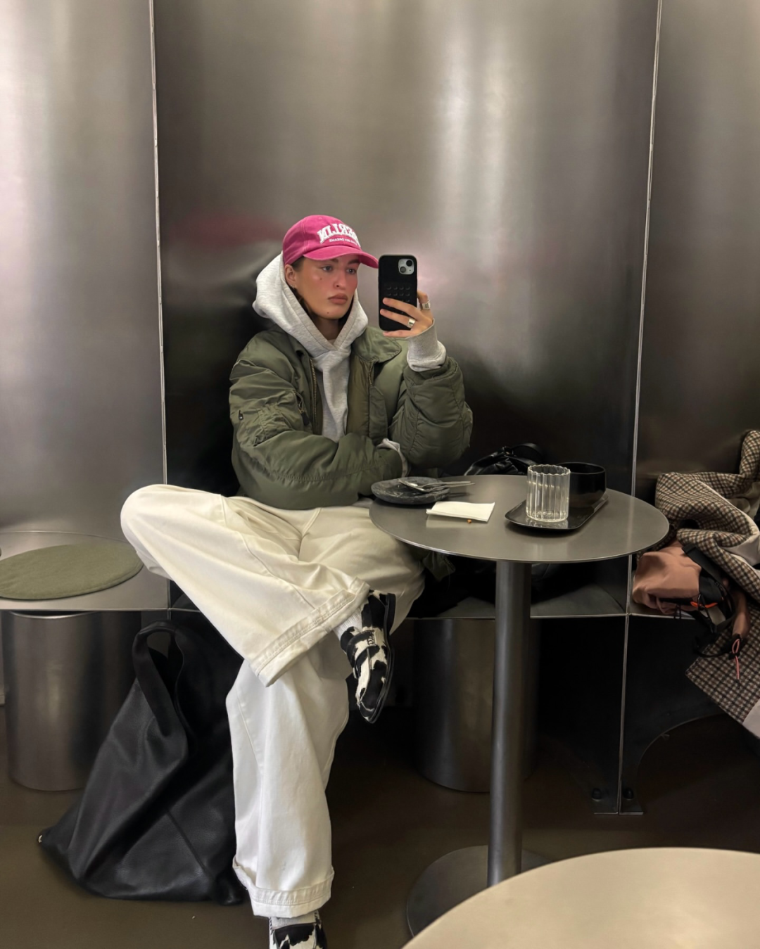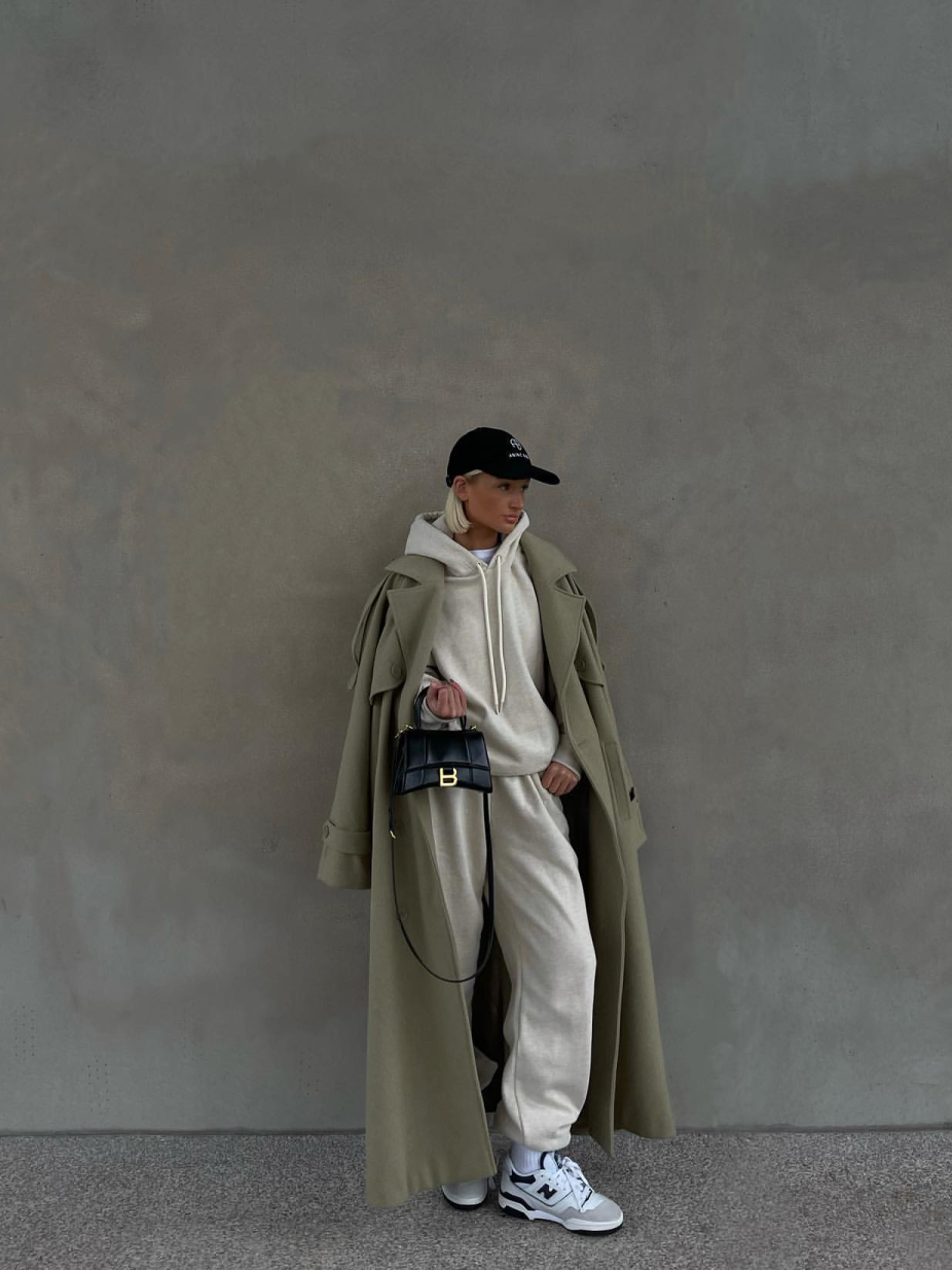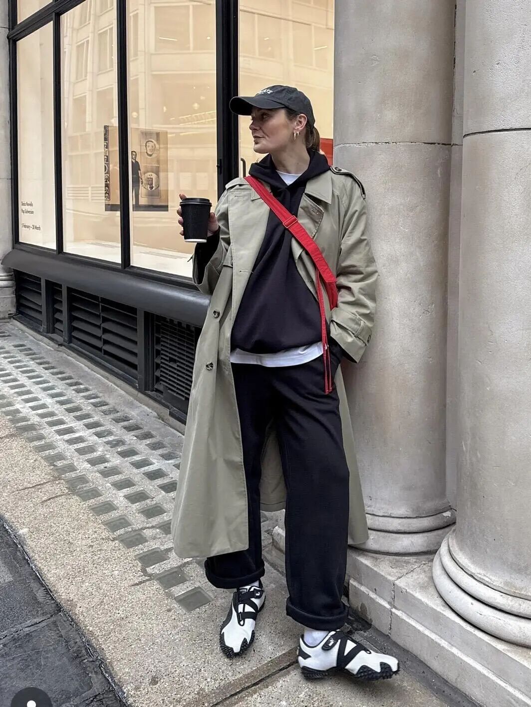 在温度不算太低的冬日,风衣或牛仔外套内搭卫衣都是不错的选择。硬挺廓形与卫衣的舒适感形成对比,打造出随性的街头风格,微微卷起外套袖口、露出卫衣衣袖也是恰到好处的松弛。