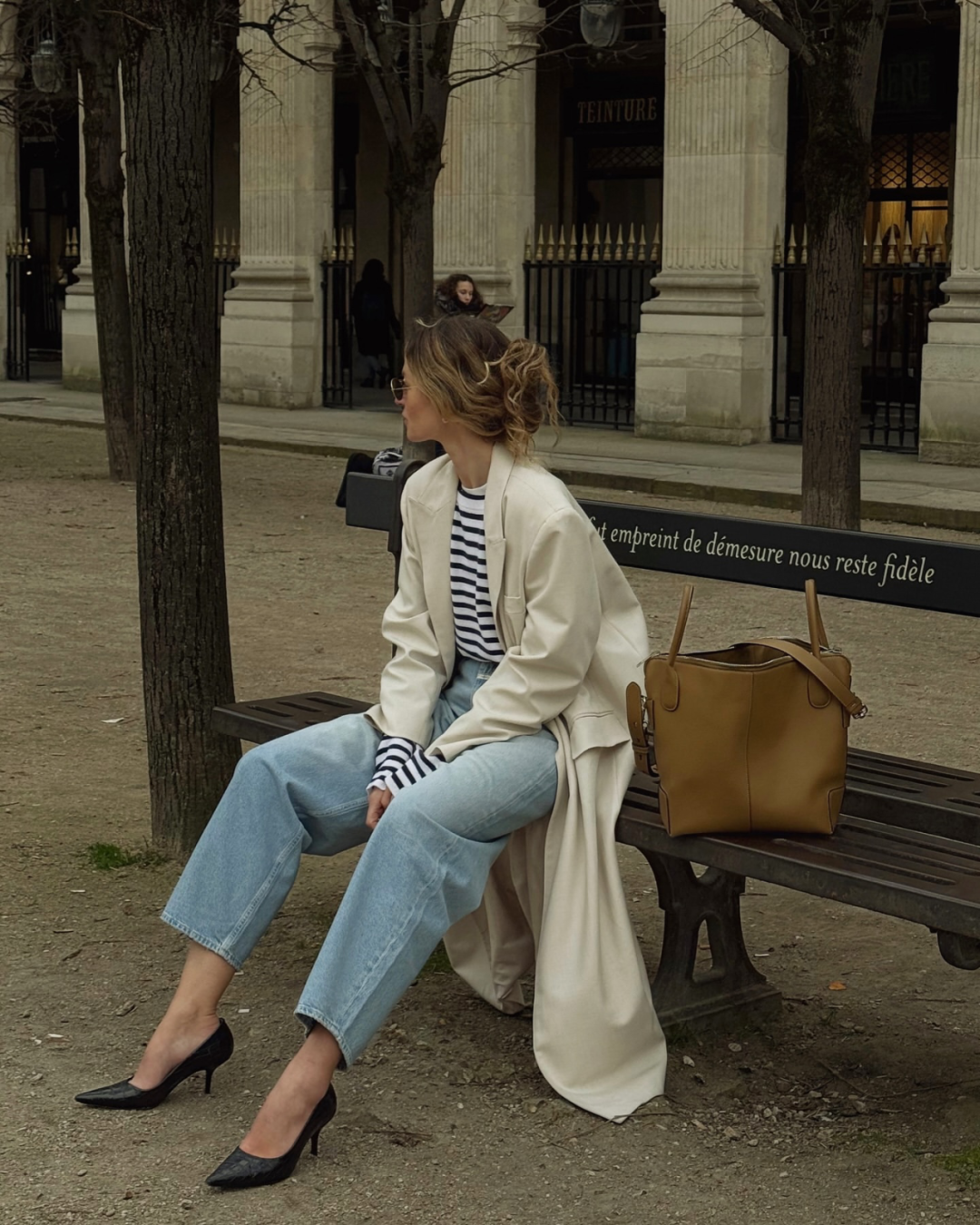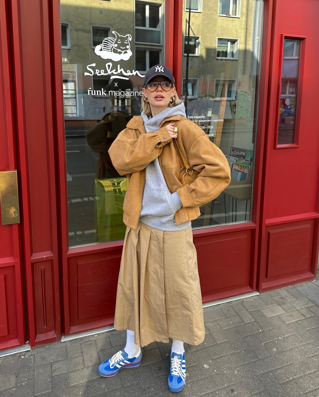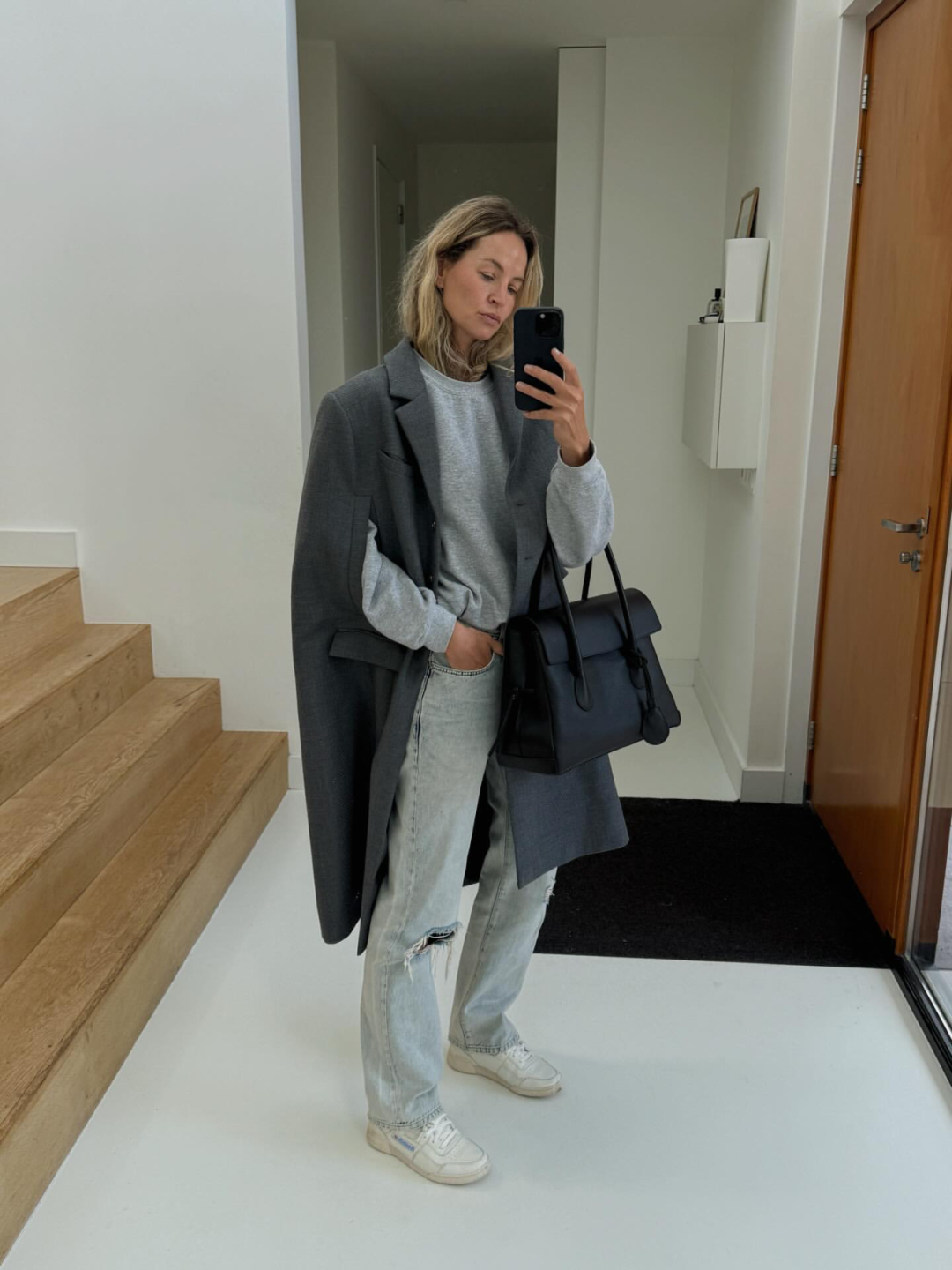 在温度不算太低的冬日,风衣或牛仔外套内搭卫衣都是不错的选择。硬挺廓形与卫衣的舒适感形成对比,打造出随性的街头风格,微微卷起外套袖口、露出卫衣衣袖也是恰到好处的松弛。