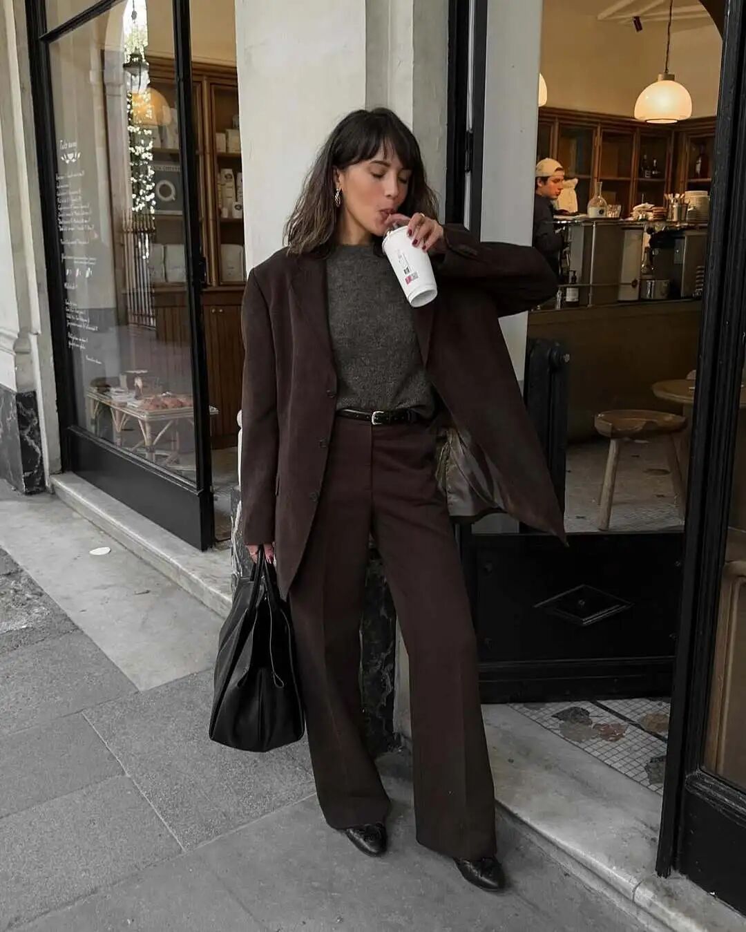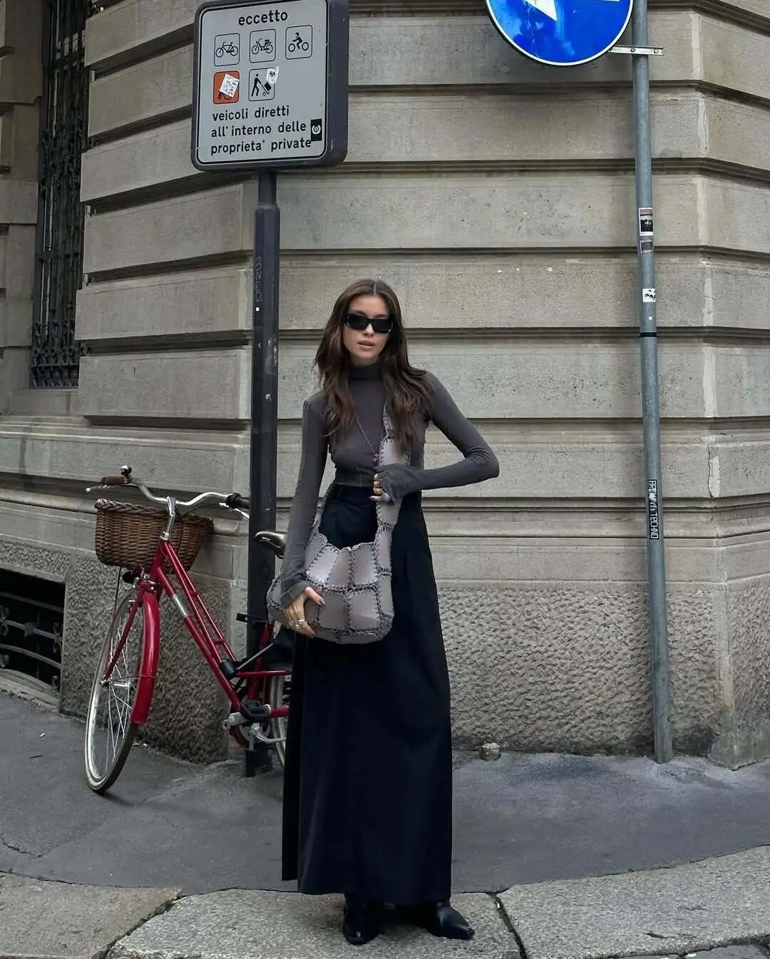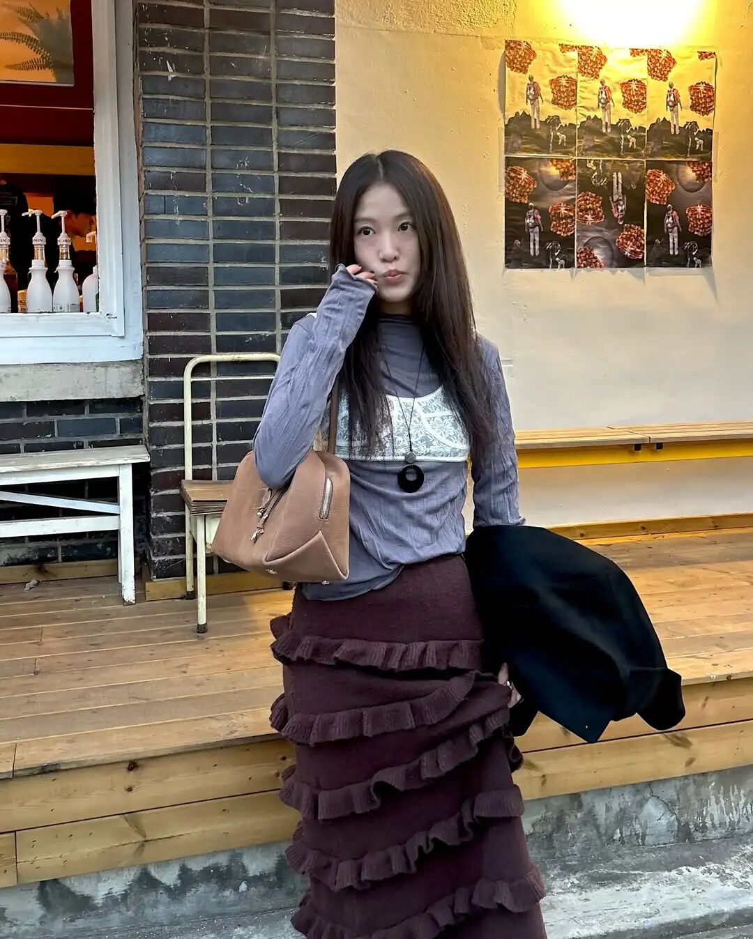 不知道怎么搭配时,同色系就是那个不出错的选择,灰色系的搭配更是把“克制美”发挥到了极致。用灰色打底搭配百褶裙或是大衣,颜色上从浅到深自然过渡,不同灰度会泛出不同的柔和光泽,像水墨画的渐变色,没有多余的色彩干扰,却靠面料的质感清晰分出层次。