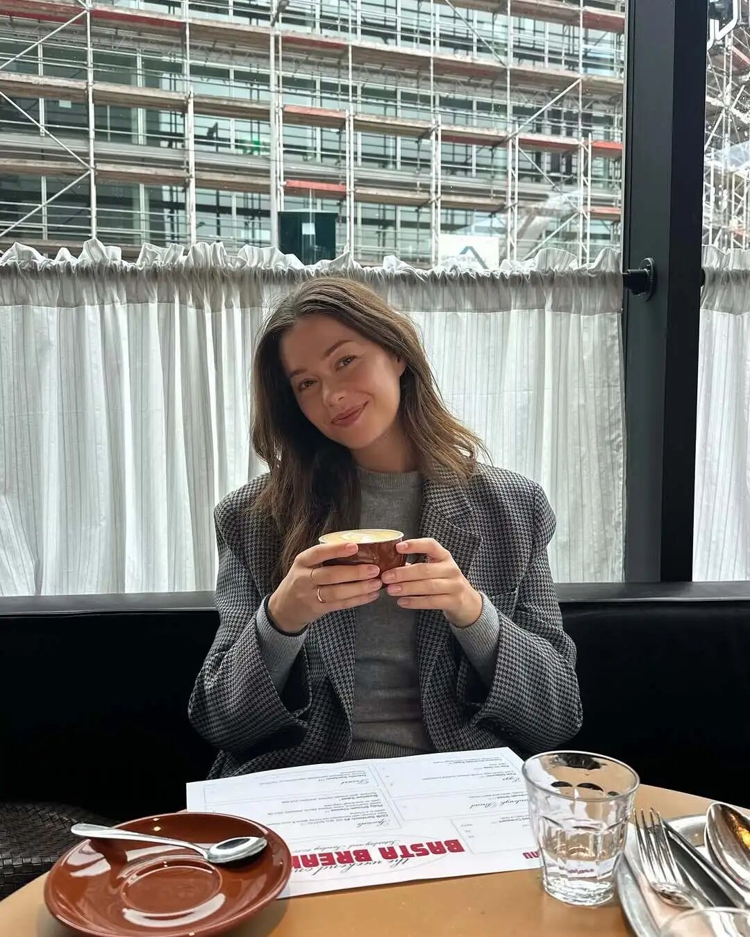 作为时髦人士们钟爱的冬日单品,灰色打底每年都能稳居基础款的“must have”。陈都灵上身了件浅灰色款,自带清冷质感,恰好衬托出她理性疏离的氛围,领口的假两件设计又暗藏巧思,悄悄打破纯色的单调。