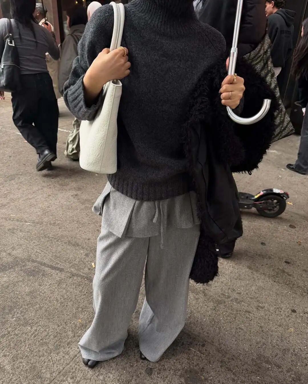 灰色打底便是这样一件能够给人“安全感”的内搭,能够接住各种风格的外套,知道什么时候该收敛,什么时候该衬托,把“得体”两个字穿得毫不费力,让冬天的穿衣环节少了纠结,多了笃定。