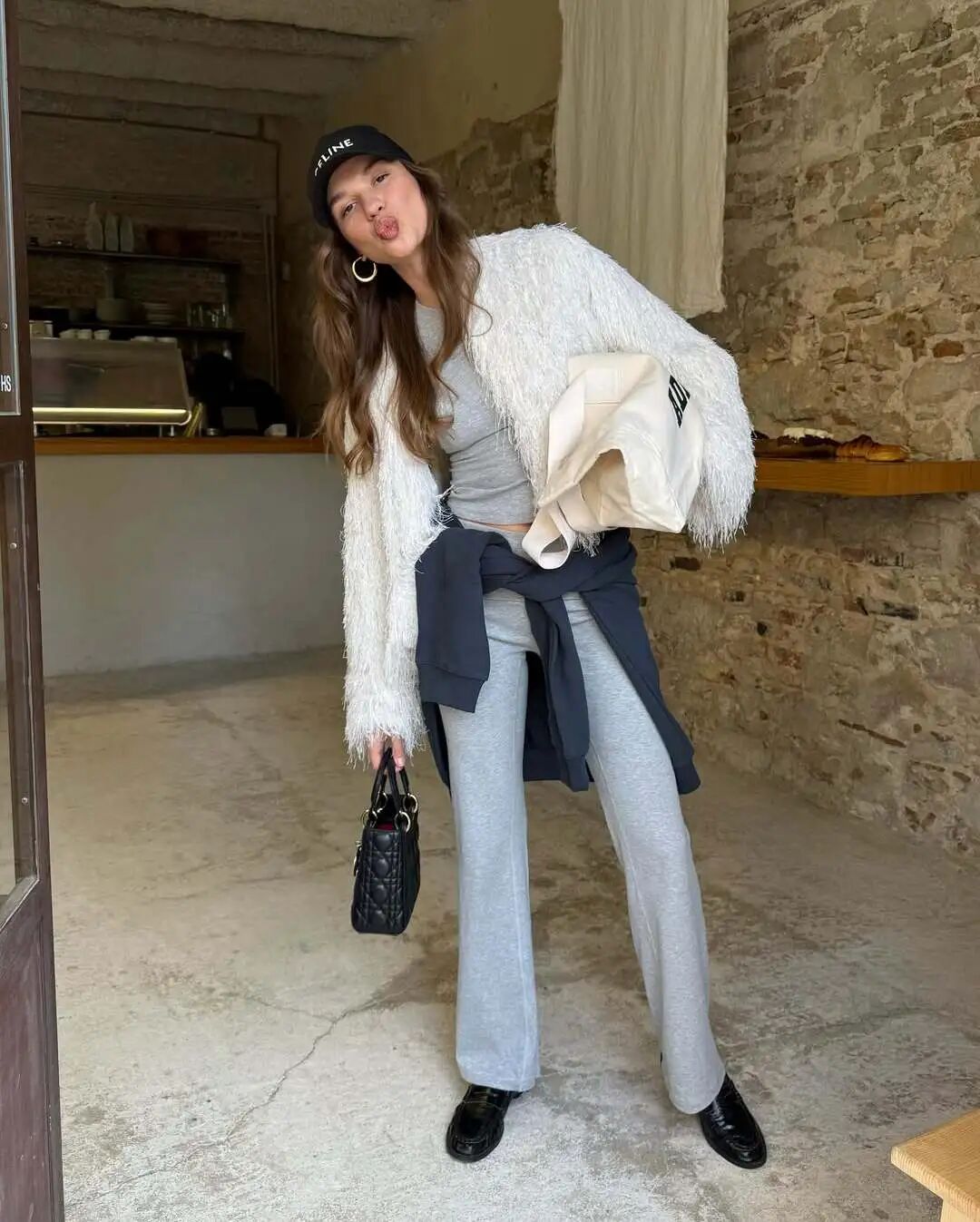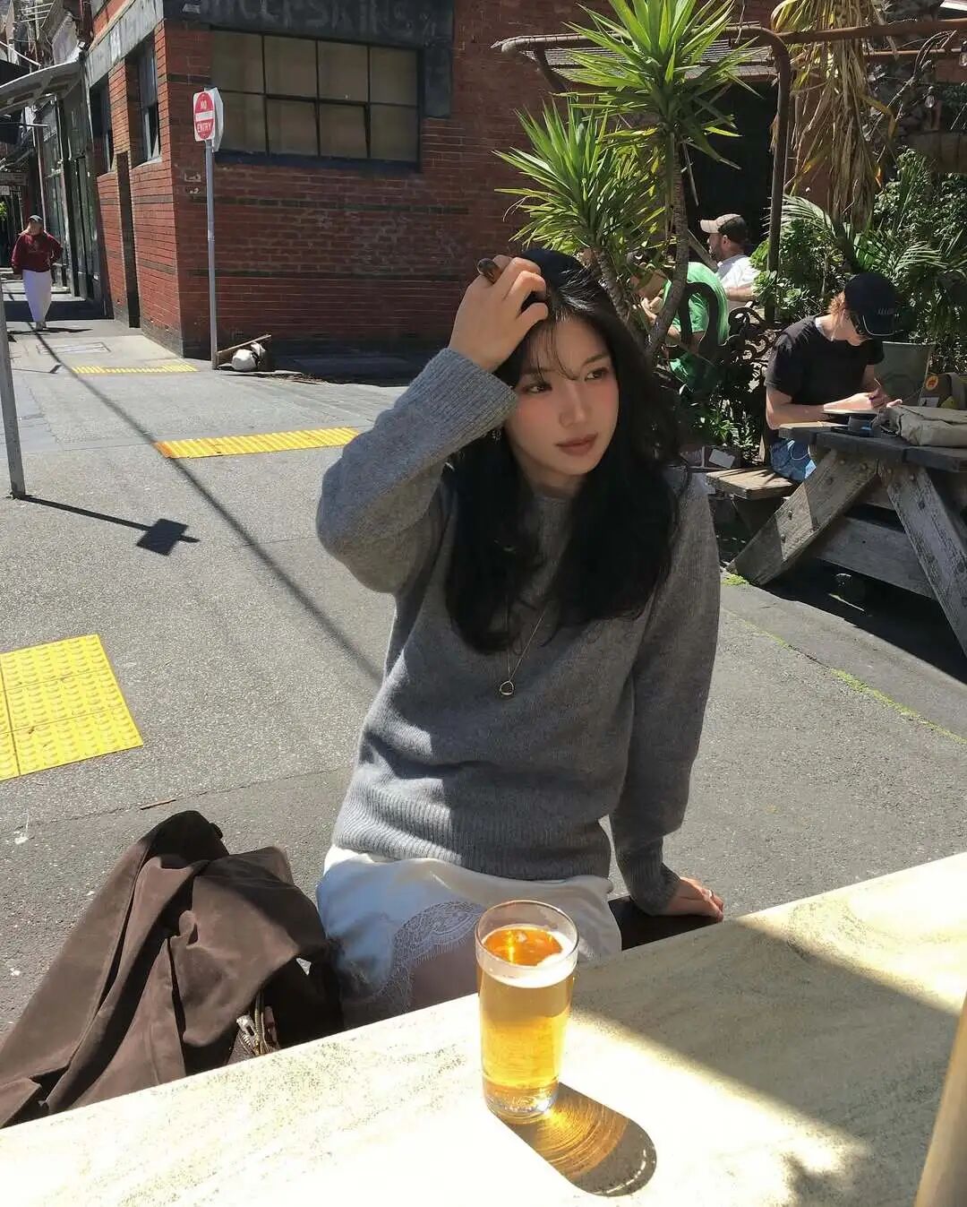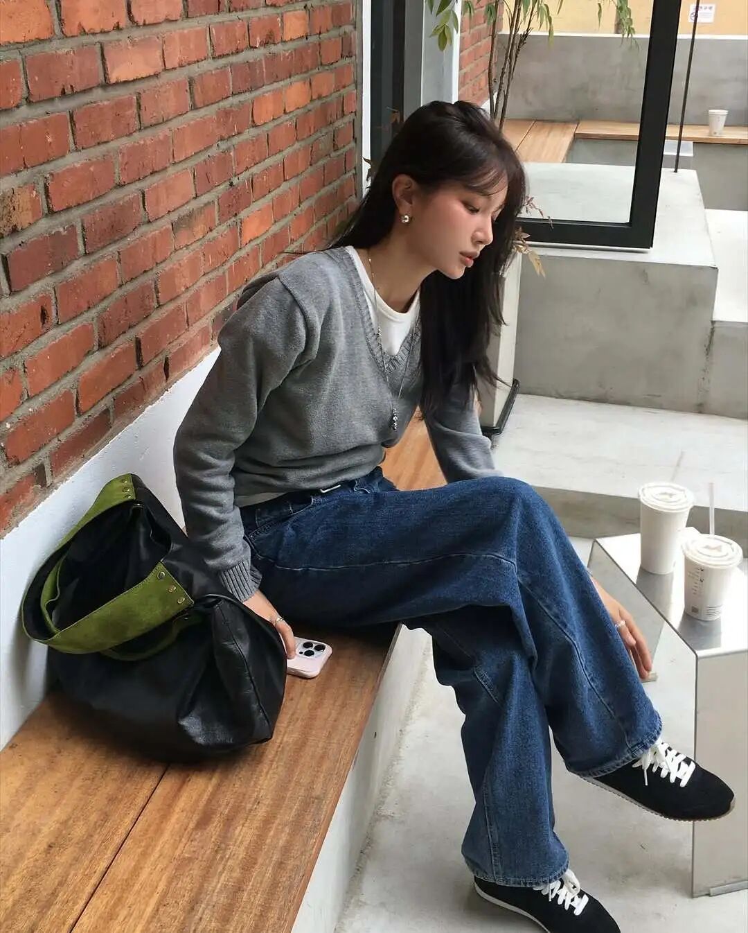 稍带些设计感的灰色打底衫则是自带加分项,比如开衫,或是带着肌理感的麻花款式,在默默过渡的同时多了一份低调精致,在室内单穿也不会显得单调。