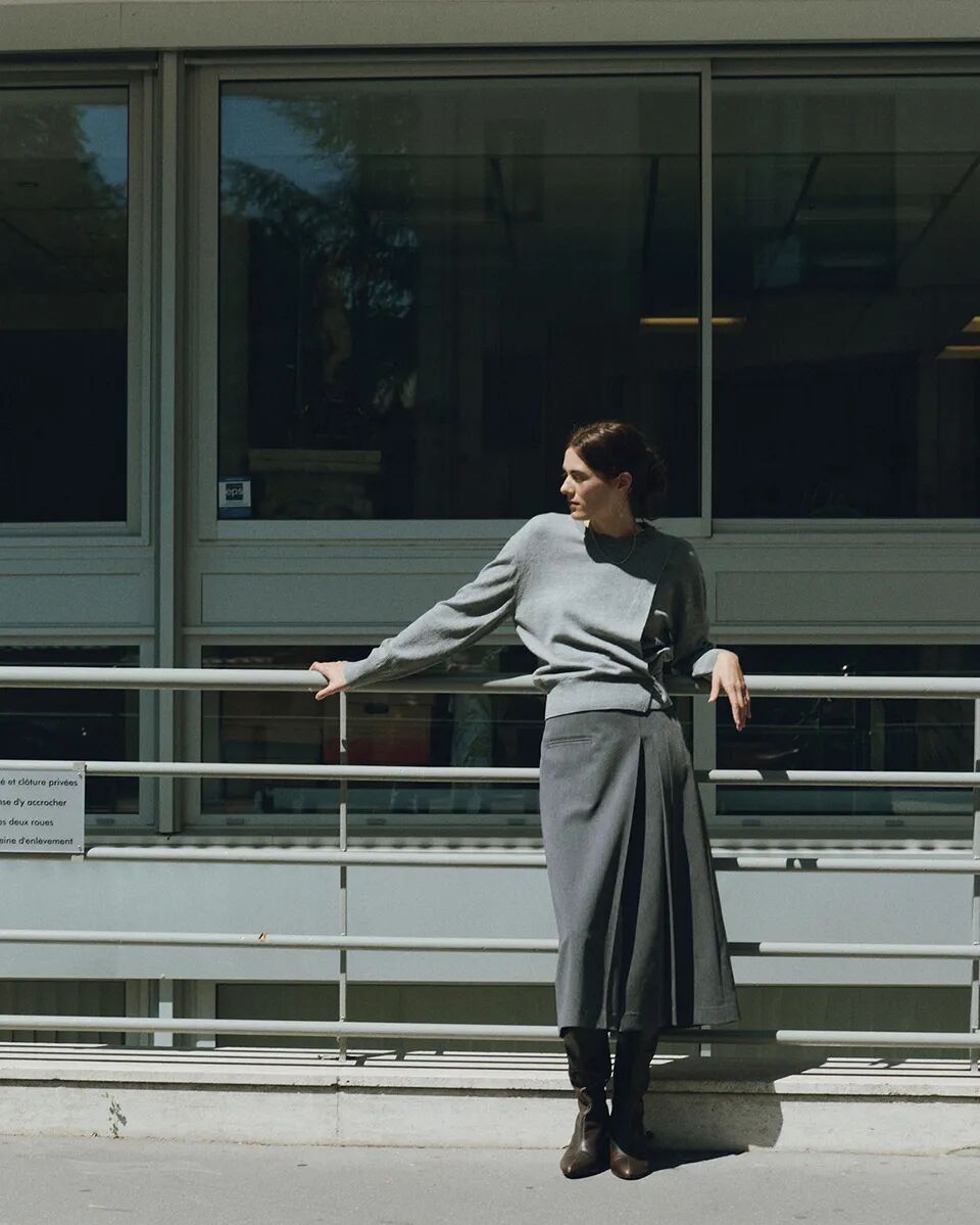 色卡上灰色总被放在不起眼的角落,可当它变成贴肤的打底衫,那种“不争不抢”反而成了一种优势,什么Effortless Chic、长期主义等等近几年被大众所偏爱的风格,都能在它身上找到锚点。