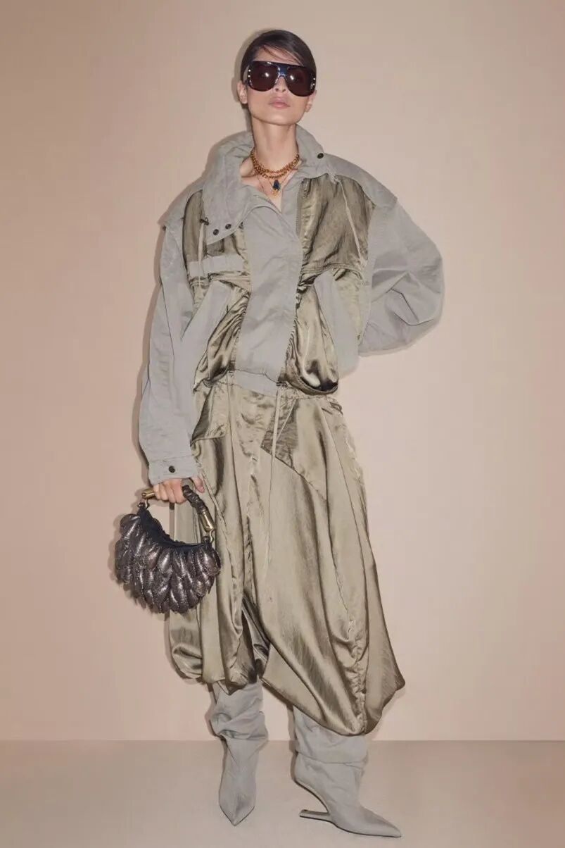 Balmain 2026春夏系列灵感来源海岸沙滩,清爽配色的麂皮褶皱靴搭配轻柔面料为主的服装,极具度假风格,尤其异形跟的设计让人眼前一亮。