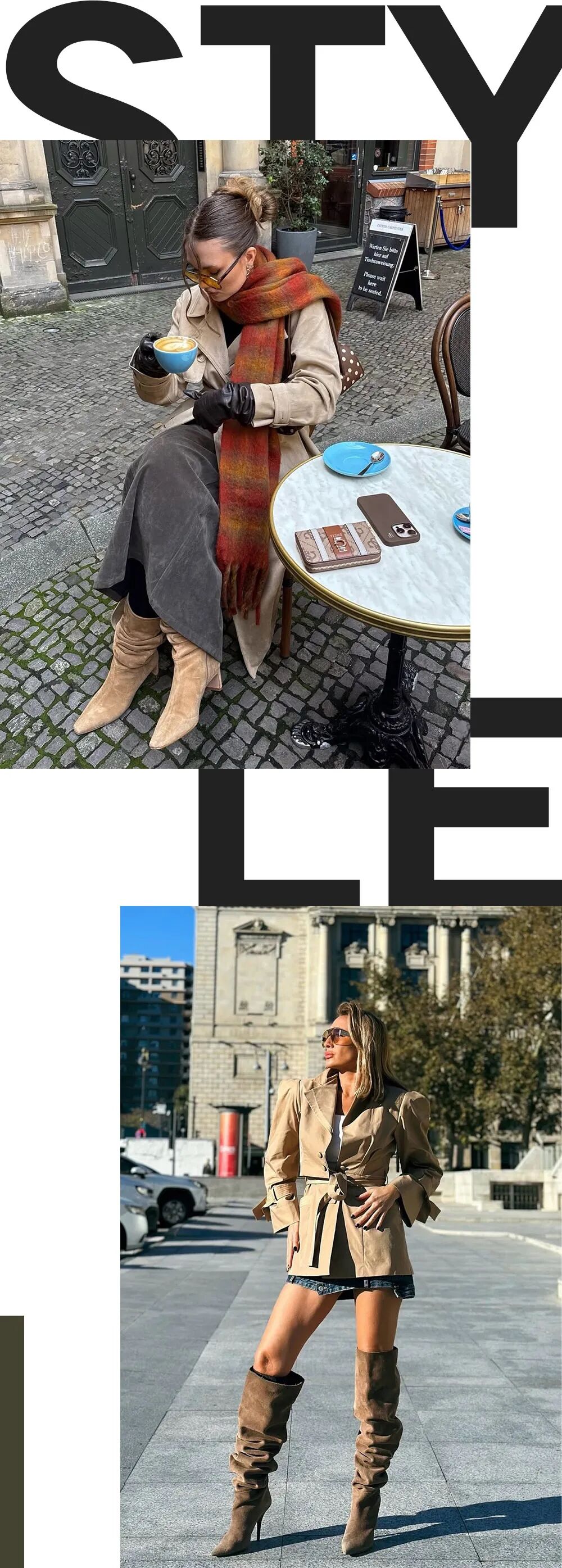褶皱靴用它独有的“堆堆美学”征服了2025年秋冬季节的时尚圈。它不像细高跟那样有距离感,也不似马丁靴那般硬朗,而是以柔软的褶皱、多元的材质,适配了不同年龄、身材、风格的需求。这个秋冬,一双褶皱靴就能搞定所有场景~