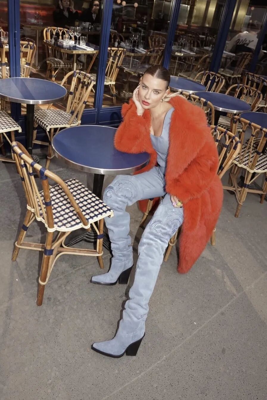 考虑到秋冬季节的穿搭需求,褶皱靴穿搭还有保暖性功能。通过搭配长裤,收紧的靴口锁住暖意,再加上毛衣等基础单品打造保暖时髦的造型。