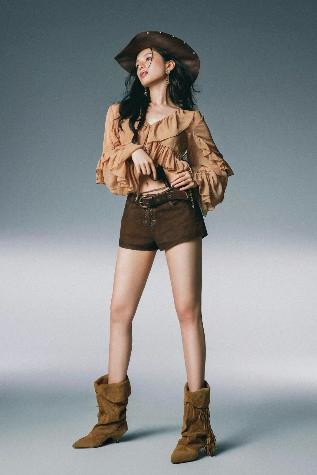 张婧仪的生日大片则把褶皱靴穿出了“温柔约会感”。麂皮褶皱靴配上细细的流苏,走路时会轻轻晃动,整个造型都是“美拉德风”。
