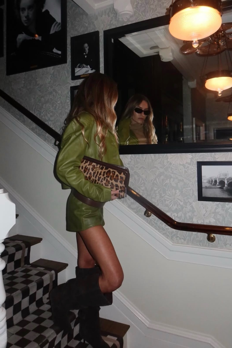 Ralph Lauren 2025秋冬秀场上从外套到包包再到靴子,全是柔软的皮质材质,褶皱靴的靴筒褶皱在灯光下泛着细腻的光泽,搭配同色系的大衣,整个人都透着高级的温柔感。