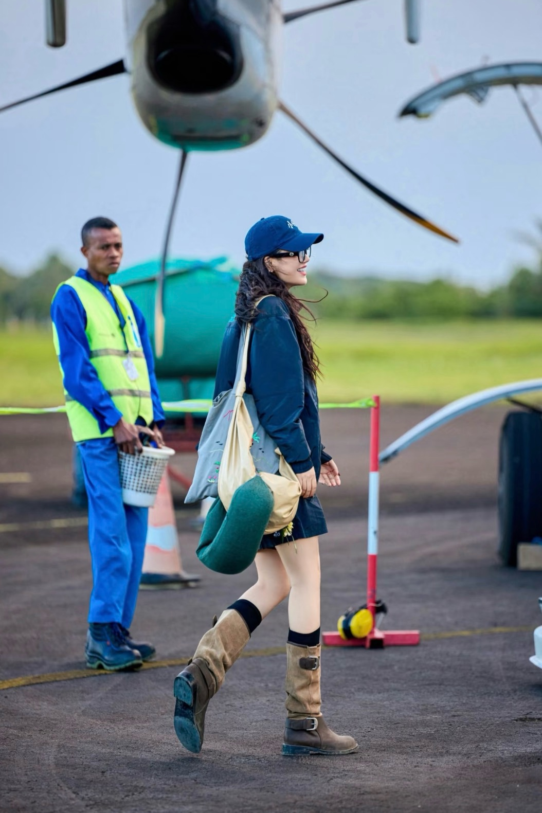 钟楚曦度假的两套不同风格造型都选择搭配褶皱靴,把腿形修饰得又细又直,视觉上直接拉长10cm,简直是旅行穿搭教科书。