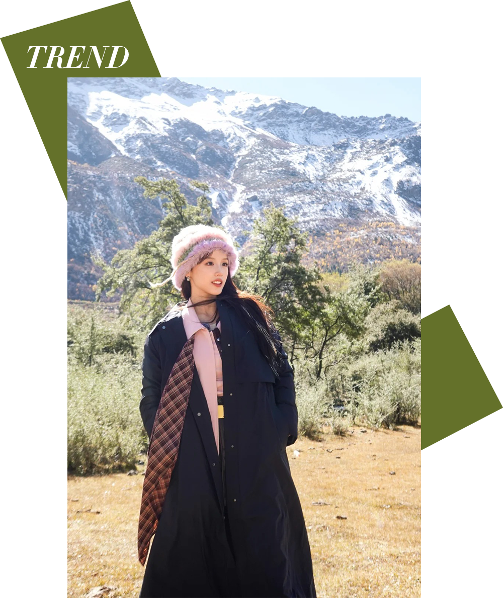 在风格的塑造上,利用一些单品自带的温柔滤镜来强化“Soft”的基调,意想不到的组合恰恰彰显了“不失个性”的“Core”内核。张雅琪的这身造型,亮眼的粉色衬衫搭配细节丰富的格纹围巾,层次感与甜美感兼具。而点睛之笔莫过于那顶毛绒绒的帽子,不仅保暖,更仿佛自带柔光滤镜。