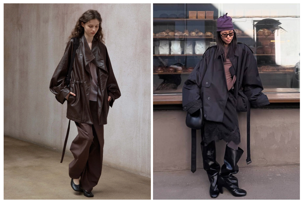 一件廓形风衣外套,是勾勒文艺温柔气质的绝佳单品。它不像传统风衣那般凌厉,从肩部自然垂坠而下的衣摆,用柔和的线条让整体造型都“软”了下来,也更倍增了随性优雅的风格。