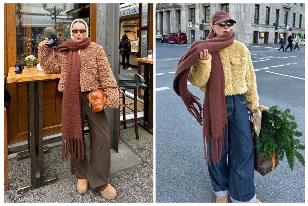 无论你想塑造利落干练的风格,还是飒爽的形象,毛领围巾厚重的质感在颈间环绕,不仅带来实实在在的温暖守护,更让整体风格不由自主地慵懒松弛下来。