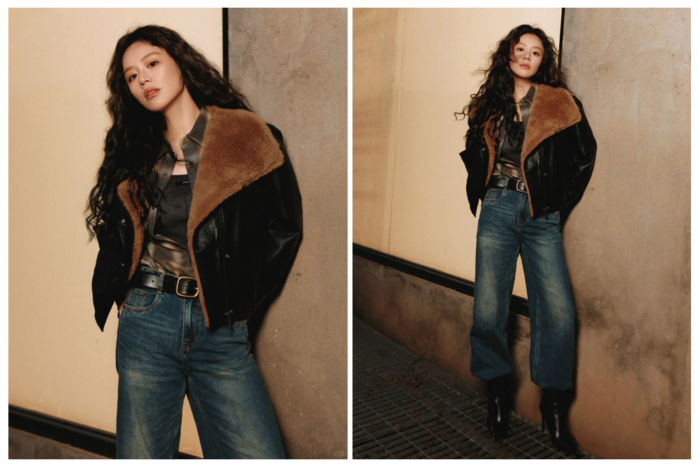 天气越冷,越想穿得“柔软”又舒适,这种Softcore不用追求夸张的戏剧性,视觉色彩温和,纯粹又简练,更是可以营造出不被束缚的慵懒氛围。陈都灵这身以灰调为主的穿搭,自带清冷气场,皮毛一体深V夹克线条利落,与浅蓝色牛仔裤更是形成完美的渐变层次感。