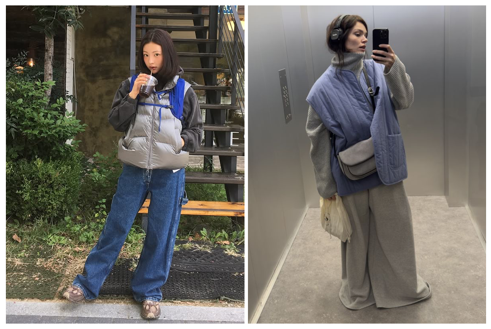 若想在日常活动中保持灵活自如、无拘无束,不妨尝试一下廓形羽绒马甲。相较于修身薄款,如面包般蓬松的廓形设计,在视觉上更显时髦与随性。