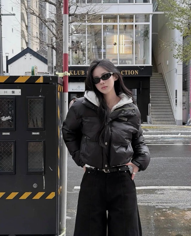 与羽绒服结合,短款夹克版形,能有效中和羽绒的膨胀感。通过明确肩线、收紧下摆,塑造出“上宽下收” 的利落轮廓。巴恩风外套自带的户外基因与羽绒服的保暖使命高度契合,而其在城市通勤中的精致化表达,又让羽绒服能无缝切换于职场、街拍与短途旅行中。
