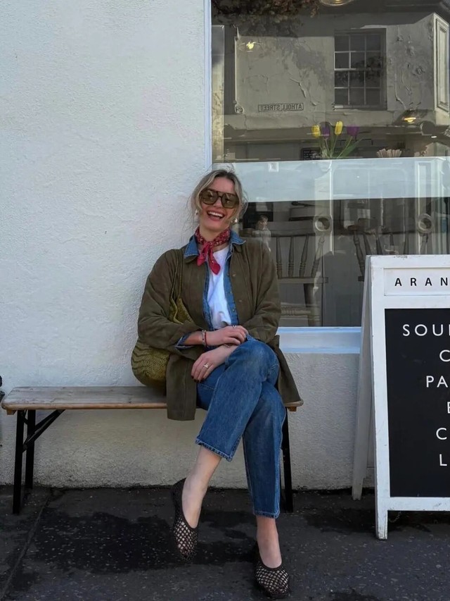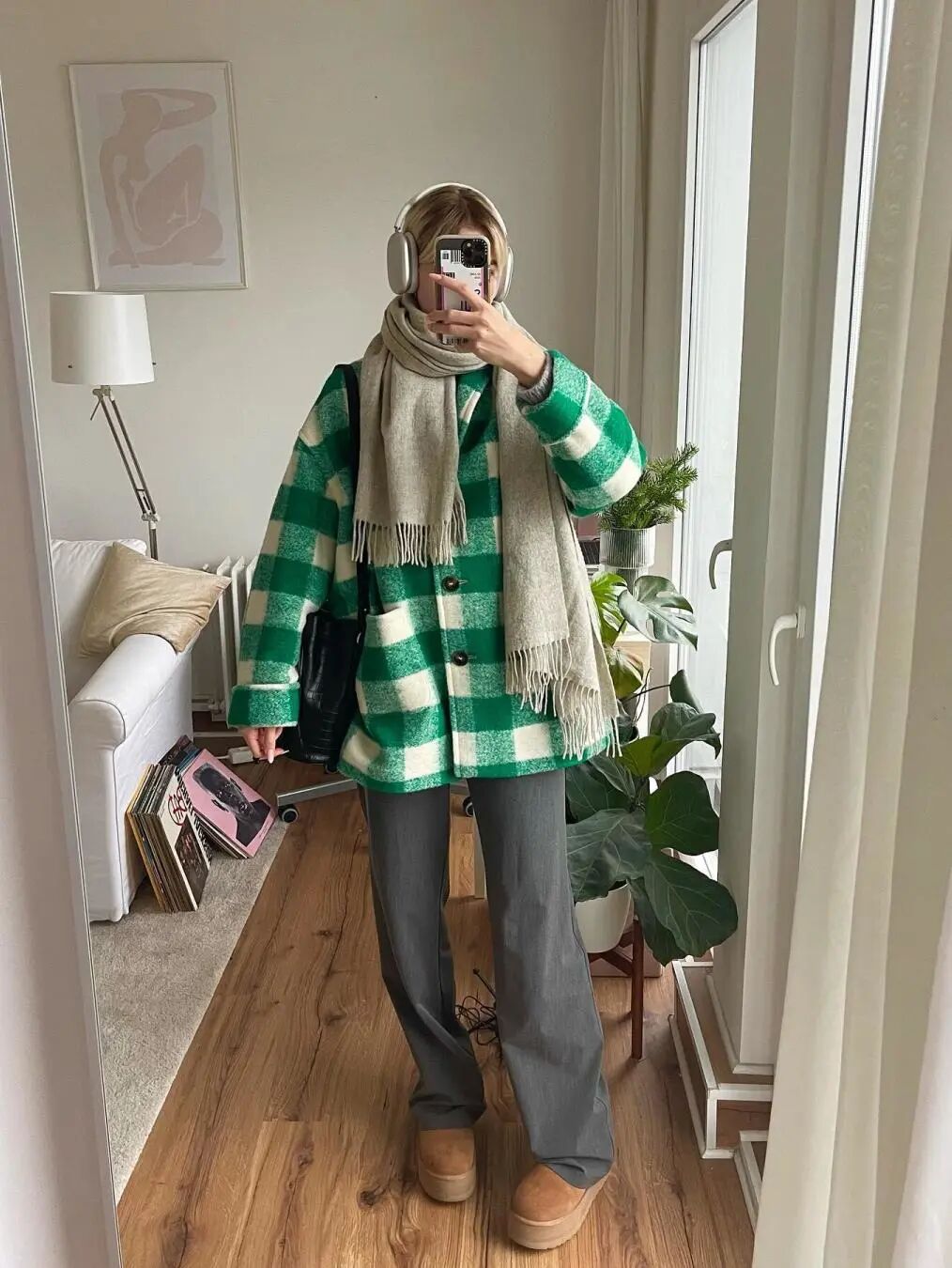 作为外套搭配简单的牛仔裤,显白又提气色;绿色针织衫也是实用之选,单穿温柔,当作内搭提亮整体造型。
