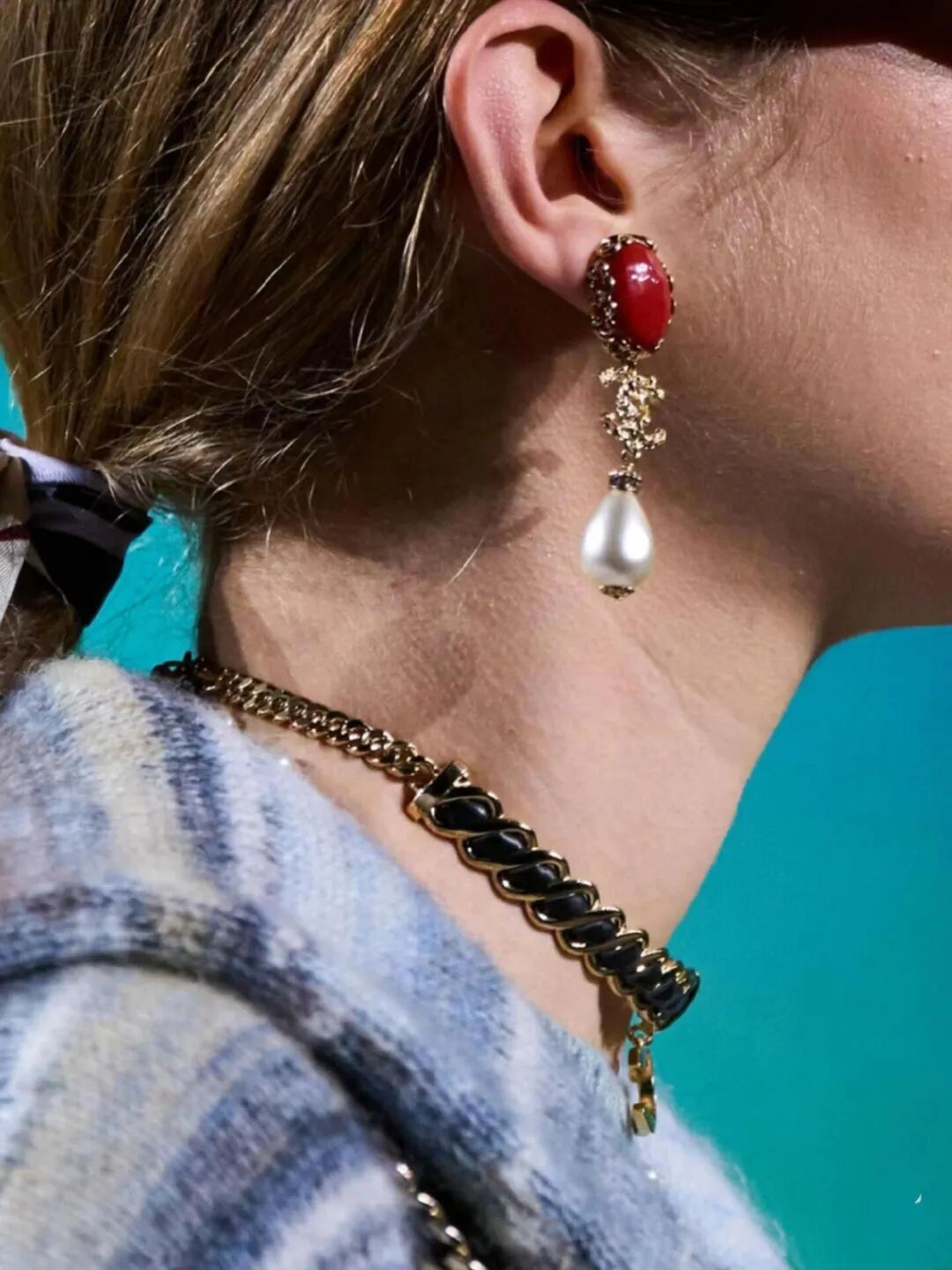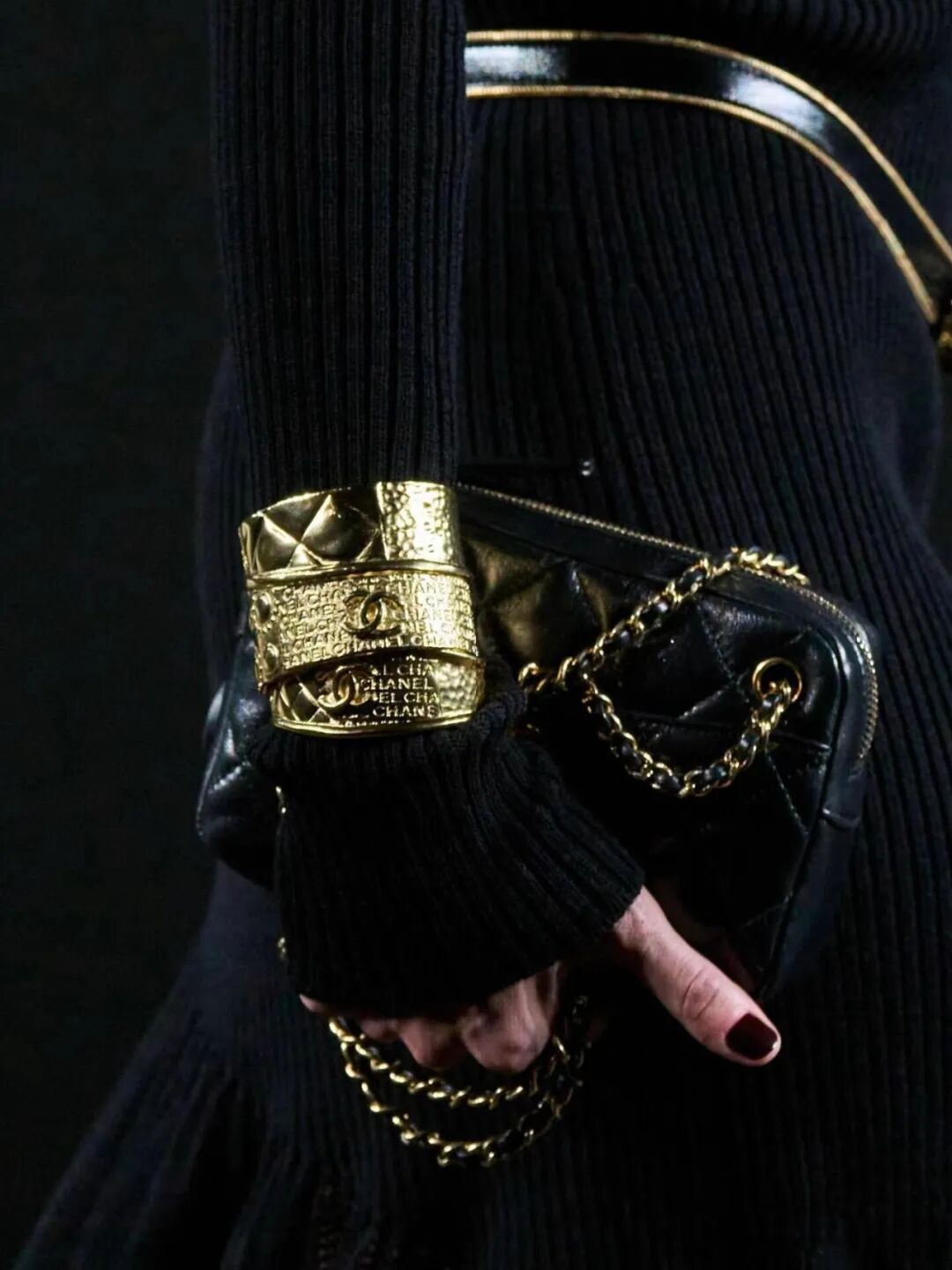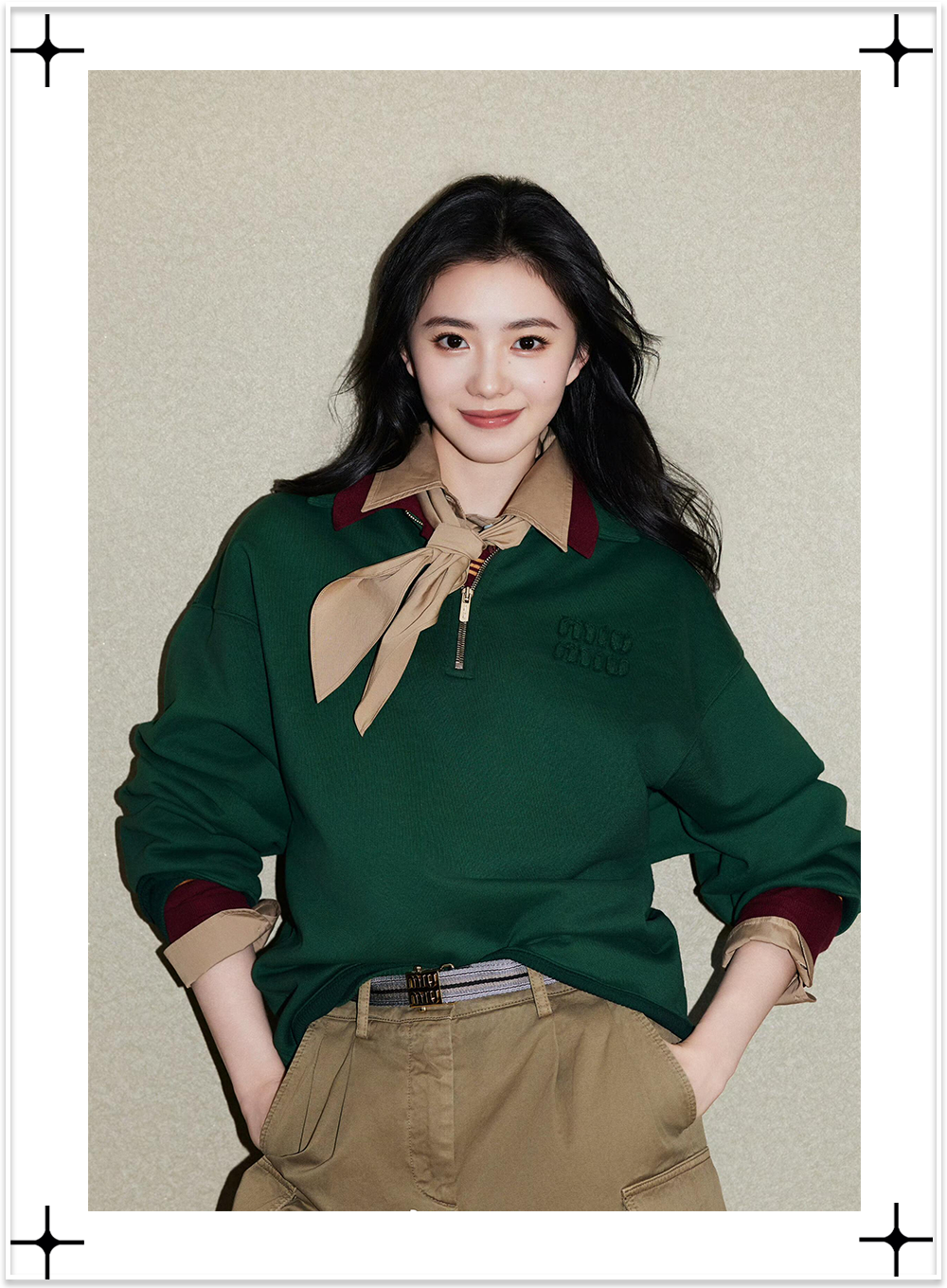 金色饰品是解锁绿色贵气与神秘的关键。金色点缀于深邃的丝绒绿之上,赋予造型一种低调而深邃的奢华气质。