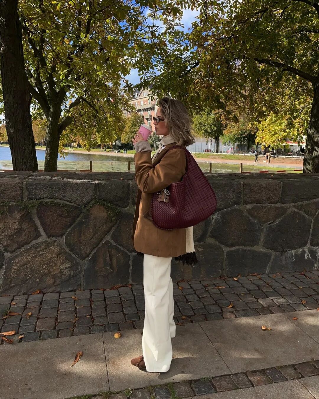 麂皮的热度回归得正是时候。和以前不同的是,现在的麂皮单品设计更简约现代,保养起来也方便很多,大多经过防泼处理,日常穿完全没问题。