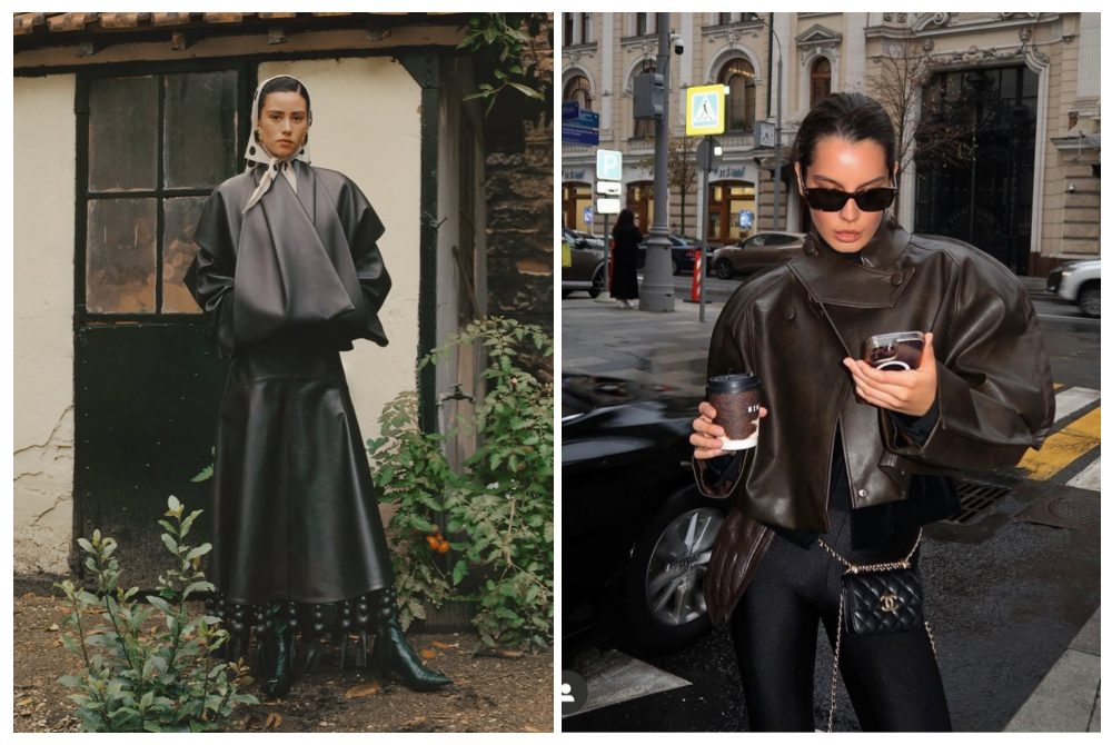 宽松的廓形皮衣,自在随性的板型,完美中和了传统西装的刻板与正式。下身只需简单搭配一条利落的皮裙,或是一条百搭的紧身打底裤,便能瞬间凝聚气场,呈现出一种不刻意、不讨好的“叛逆”风格。