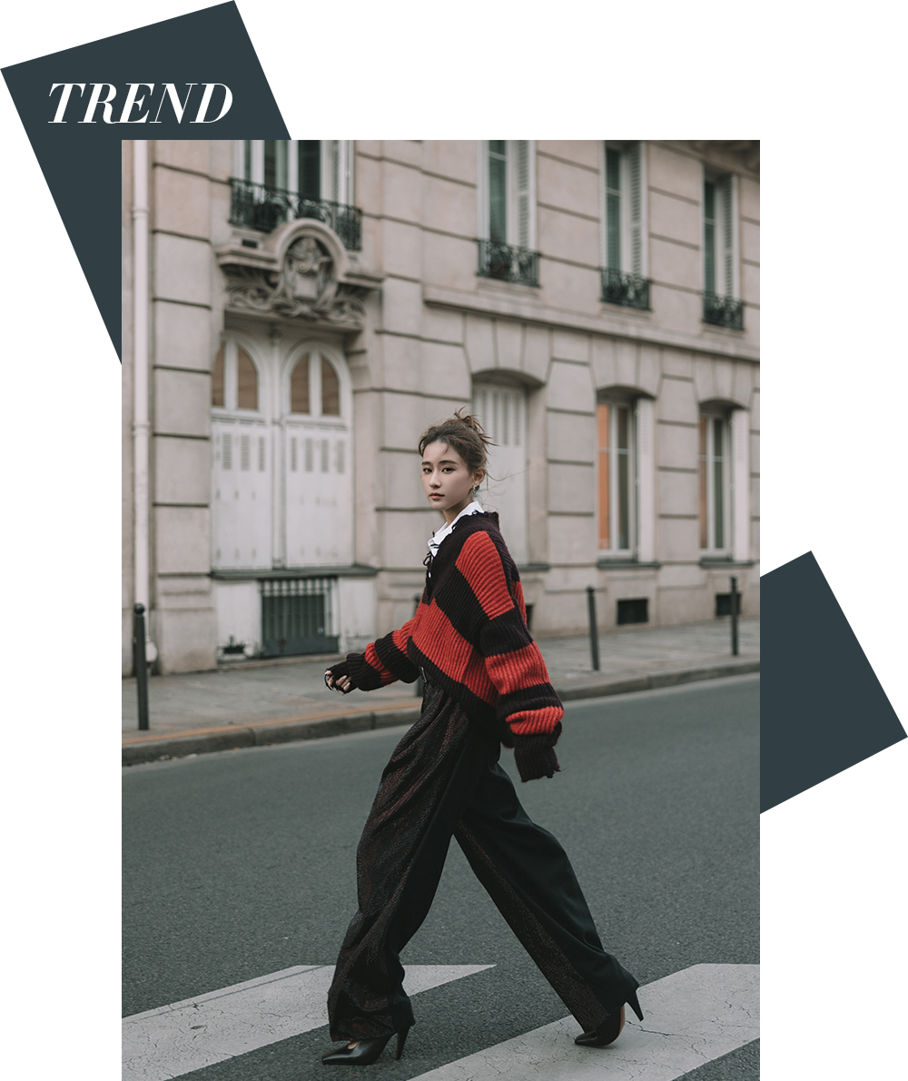 用一款造型夸张的个性配饰、一双与服装风格迥异的鞋履,成为整个造型的“情绪出口”,瞬间点亮造型。何超莲上身的粗条纹V领毛衣随性又复古,与同样具备宽松度与褶皱感线条的长裤相得益彰,而点睛之笔在于脚上那双尖头高跟鞋,它利落的线条与尖锐的鞋头,瞬间打破了上身造型的慵懒,极具辨识度。