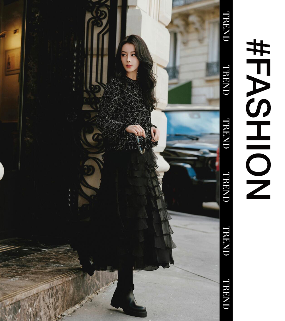随着“疯感”概念的流行,如今职场中越来越多的人开始追求个性舒适的职场着装,以此来表达不想上班的反差感,以及实现一种高级的、有智慧的叛逆。迪丽热巴在巴黎时装周的这套look,黑色粗花呢夹克衣摆的摇曳流苏,而其下搭配的层叠轻薄纱裙,则注入了充满戏剧感的芭蕾元素。这两种风格在日常场景下碰撞出奇妙的化学反应,一种兼具俏皮与优雅的独特气质。